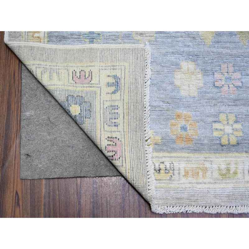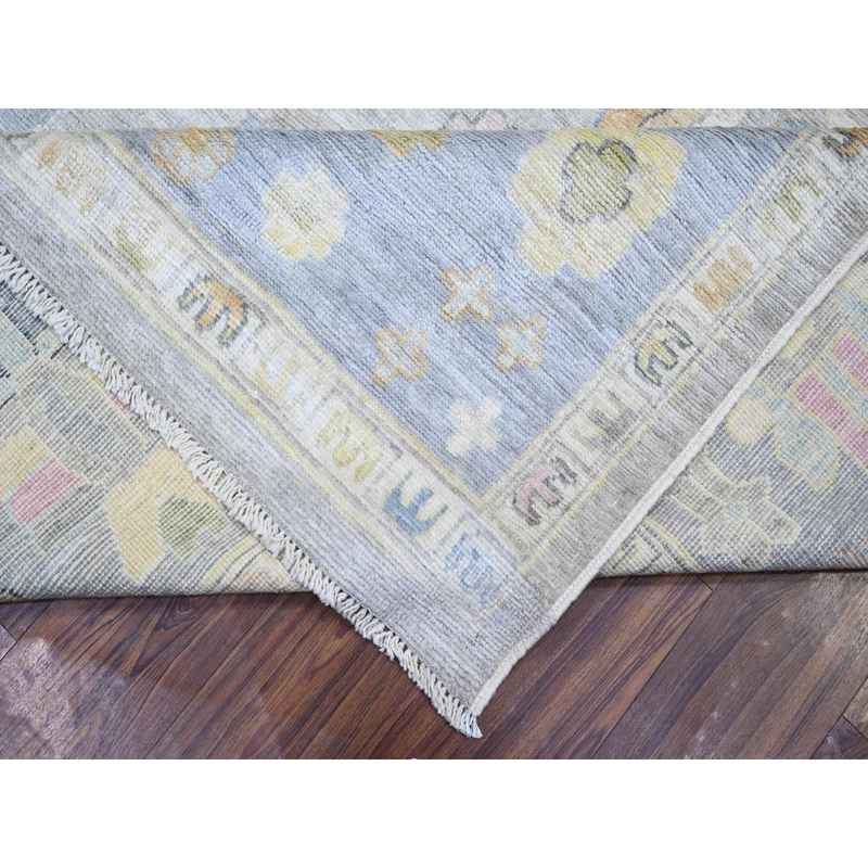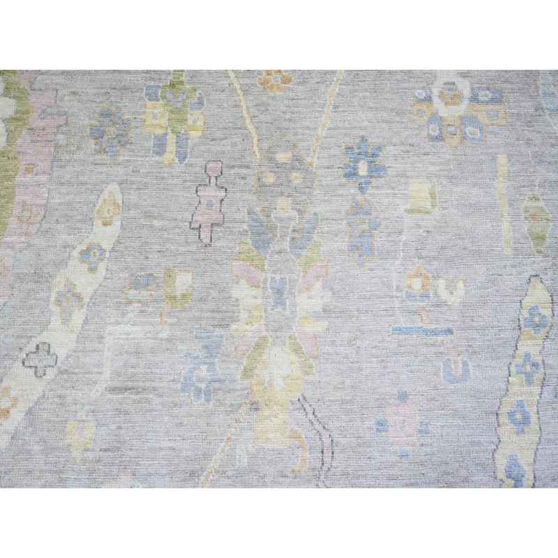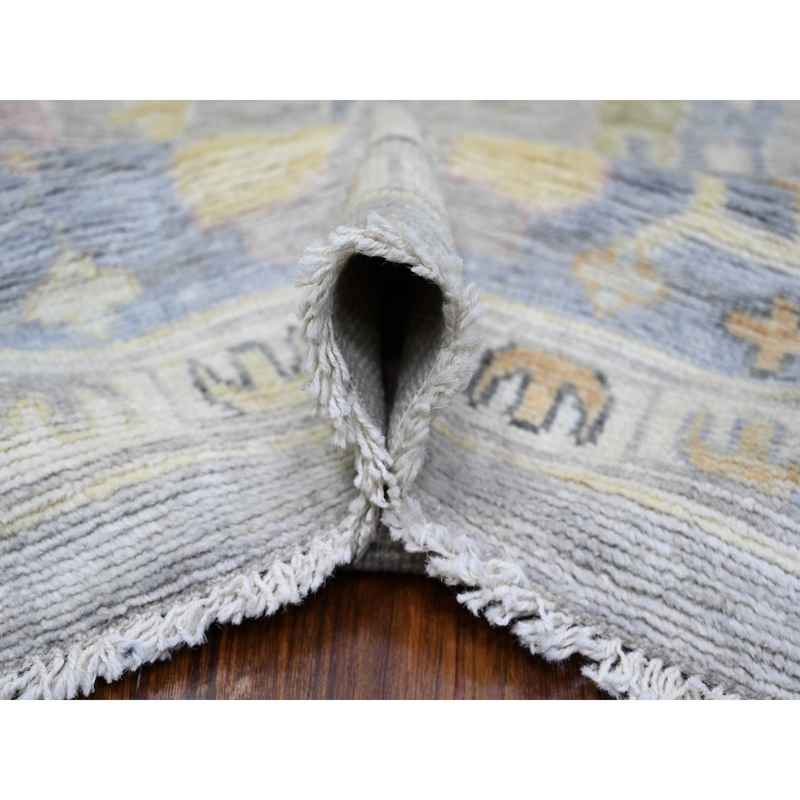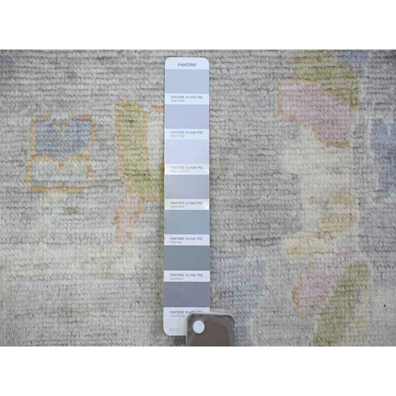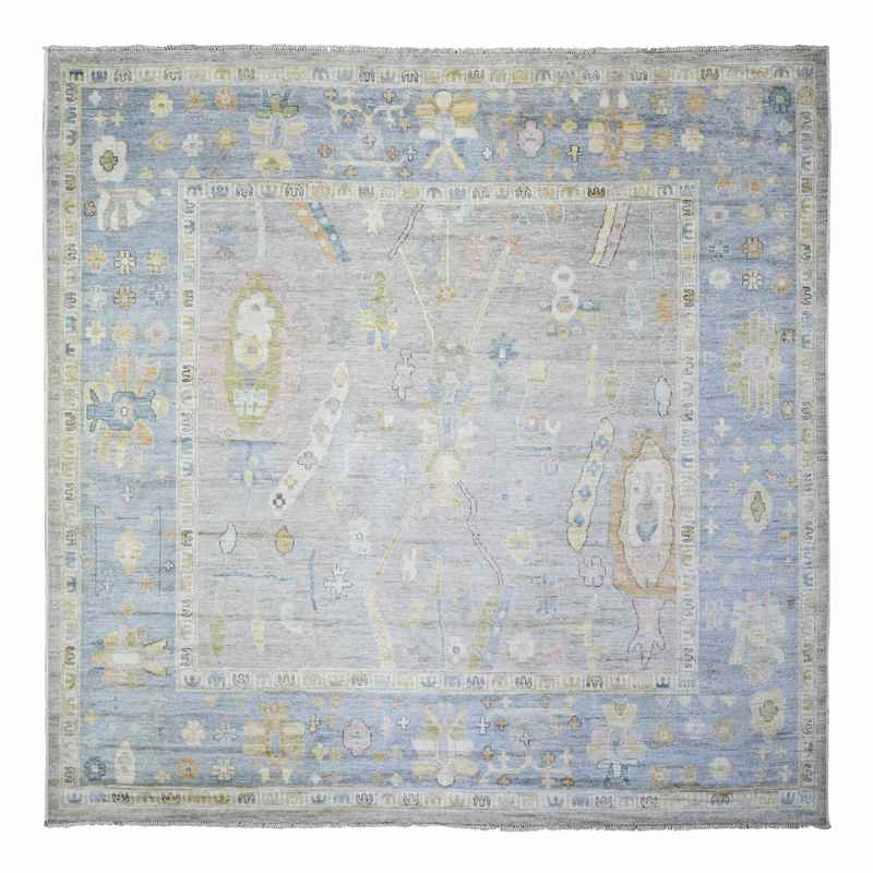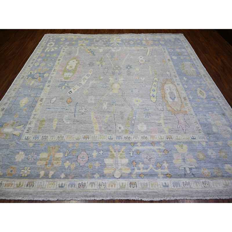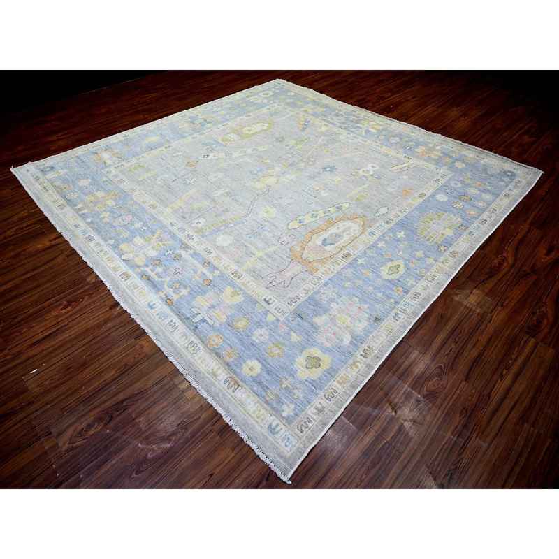 9’9″x9’9″ Cloud Gray, Hand Knotted Afghan Angora Oushak with All Over Motifs, Vegetable Dyes, Pure Wool, Square Oriental Rug Sh73214
