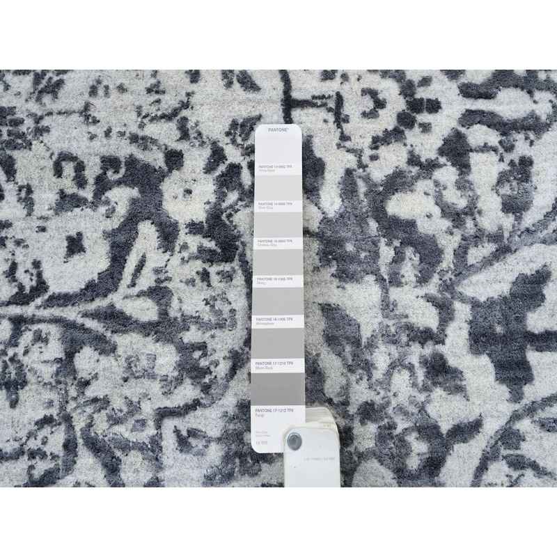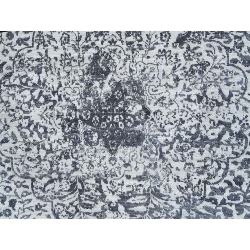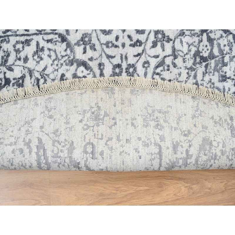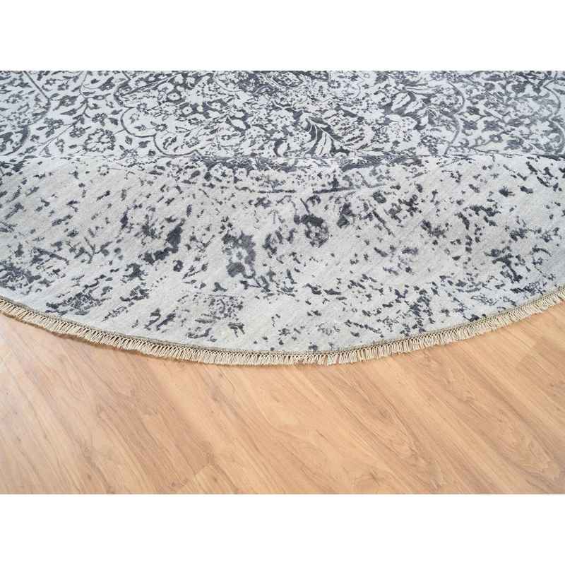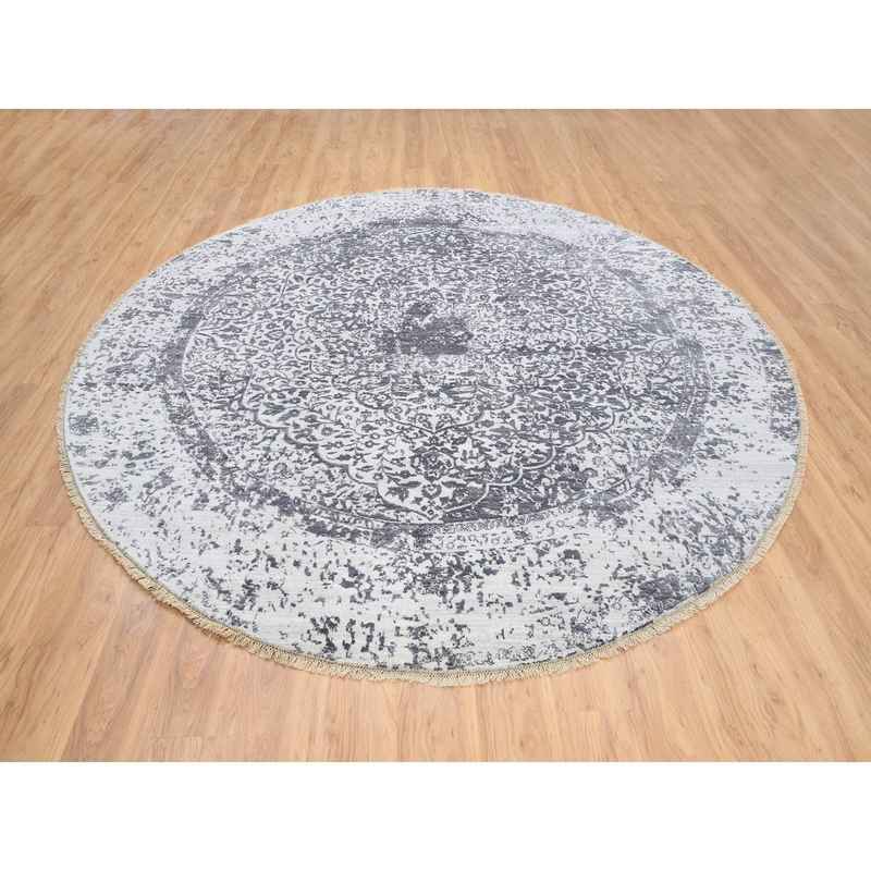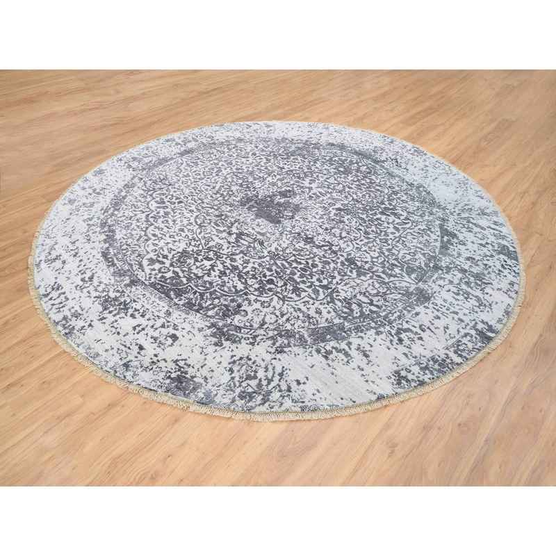 9’9″x9’9″ Silver Gray, Erased Persian Design, Wool and Pure Silk Hand Knotted, Round Oriental Rug Sh64059