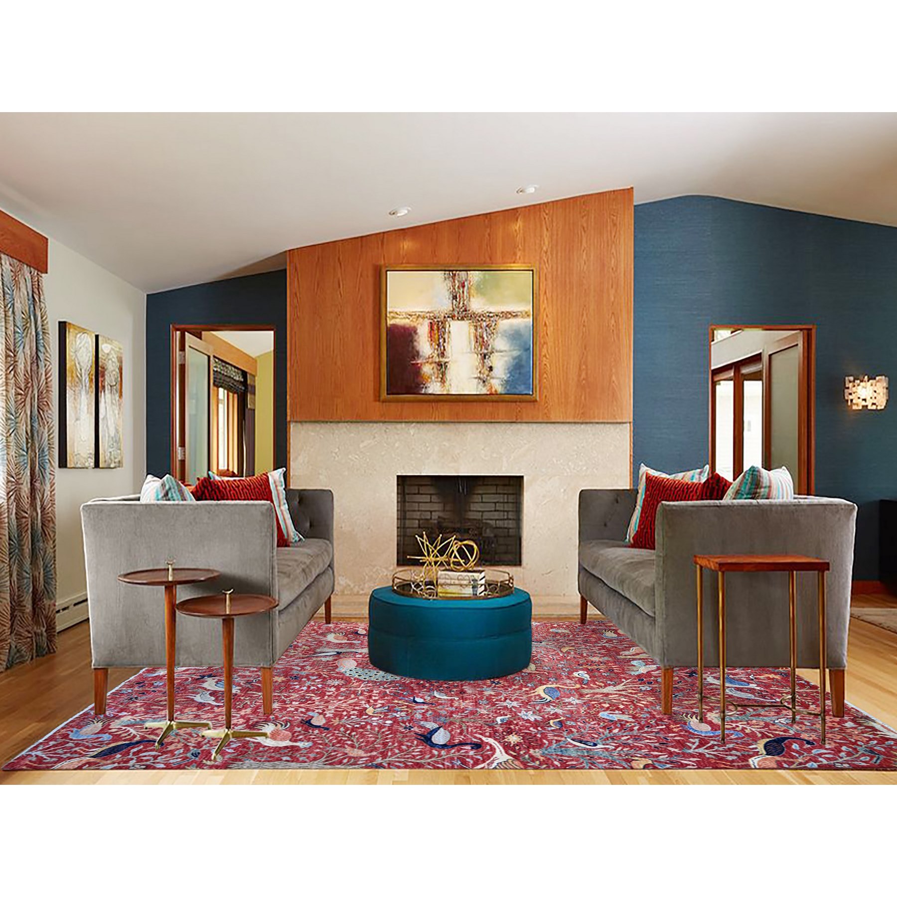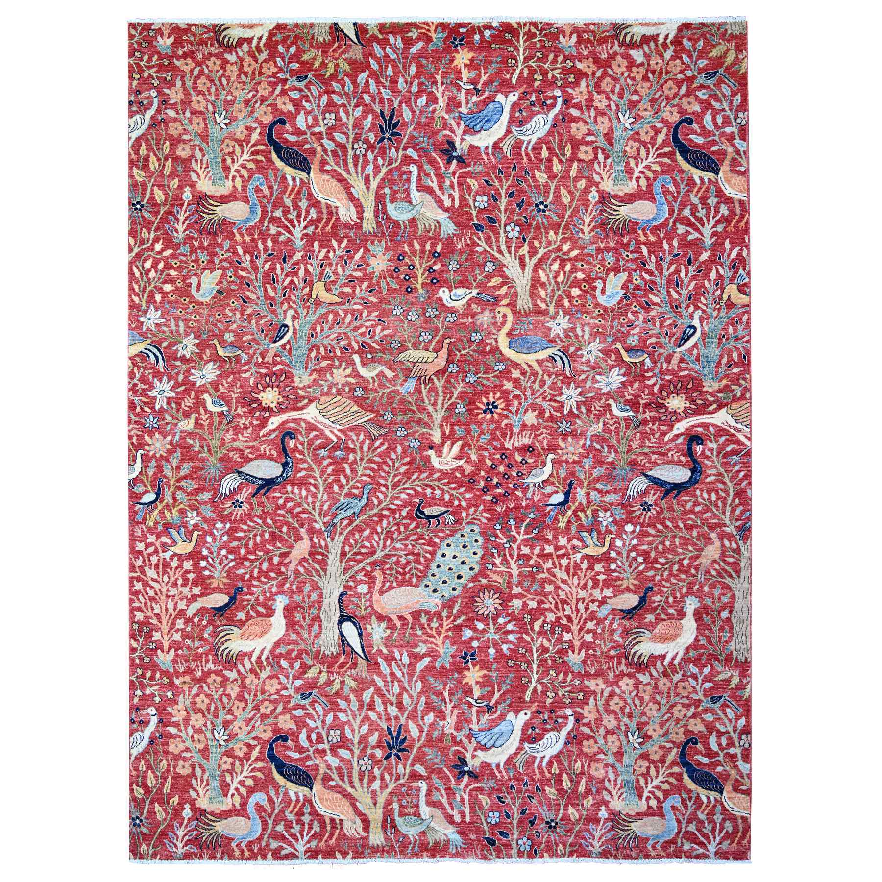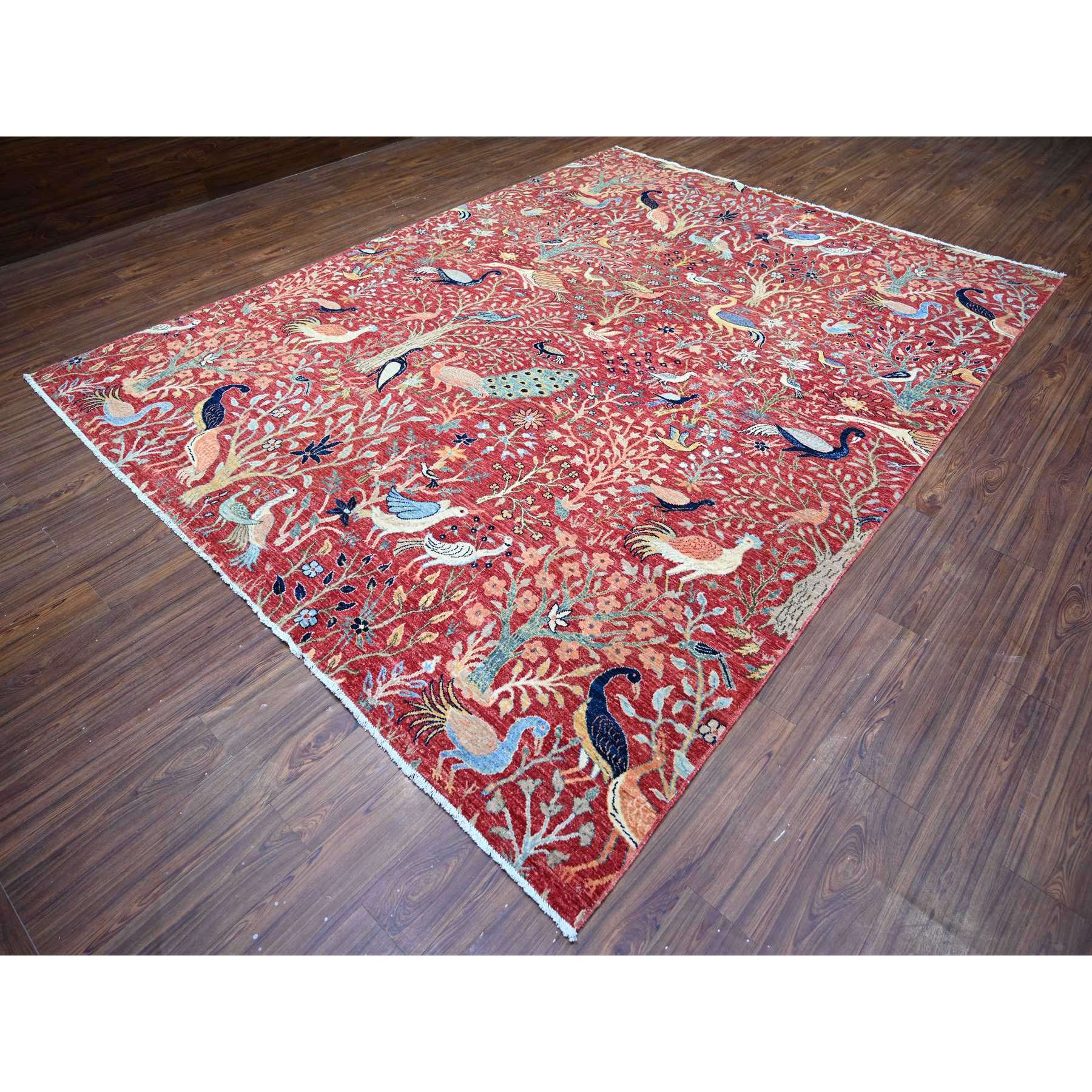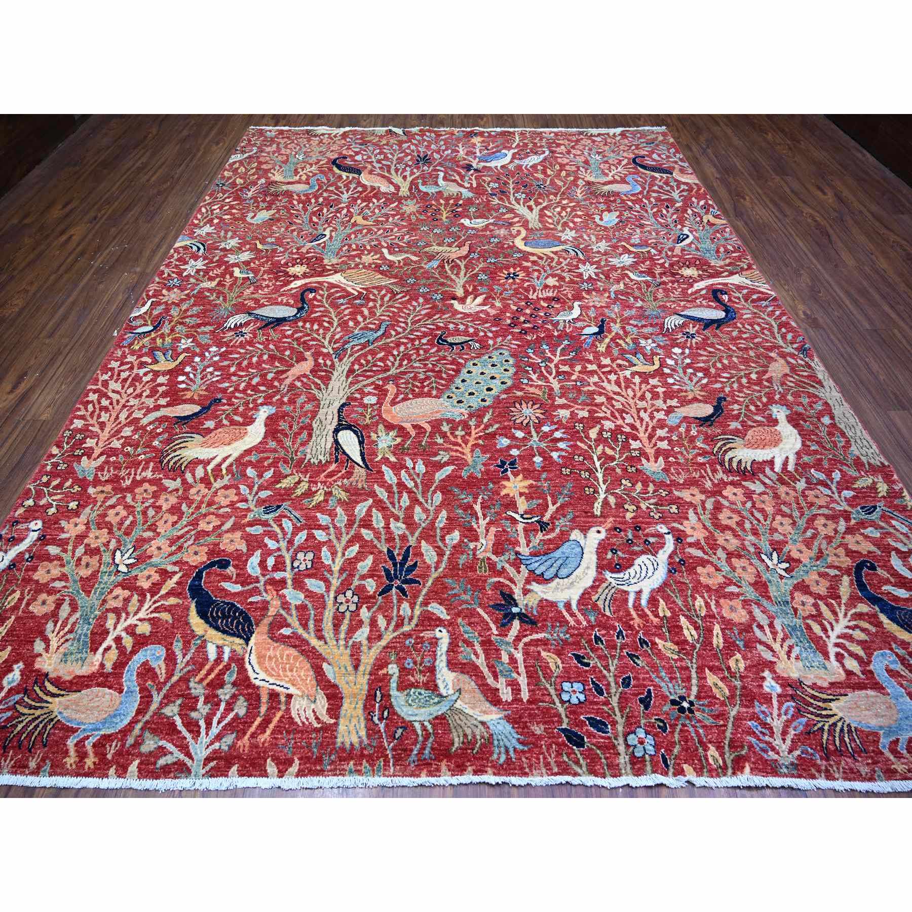 9’x11’10” Burgundy Red, Afghan Peshawar with Birds of Paradise Design, Abrash, Vegetable Dyes, 100% Wool, Hand Knotted, Oriental Rug Sh74522