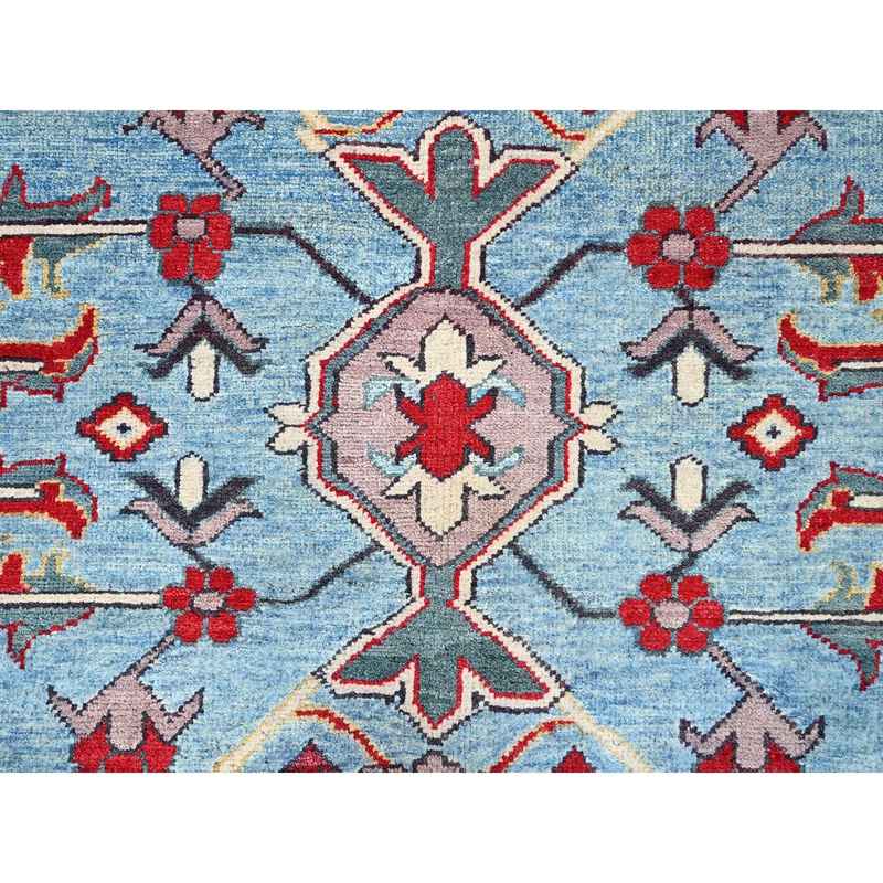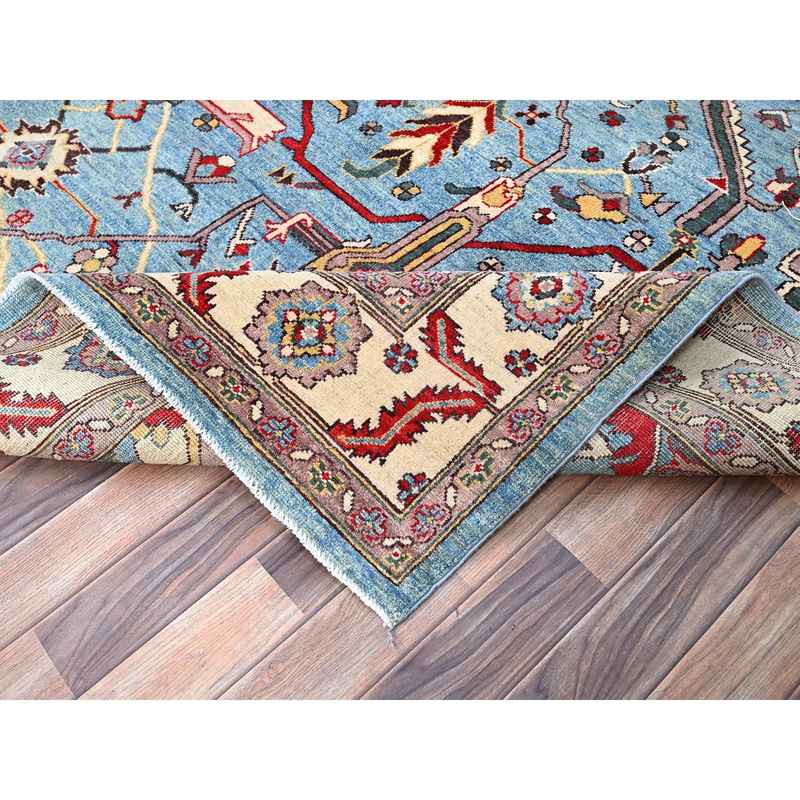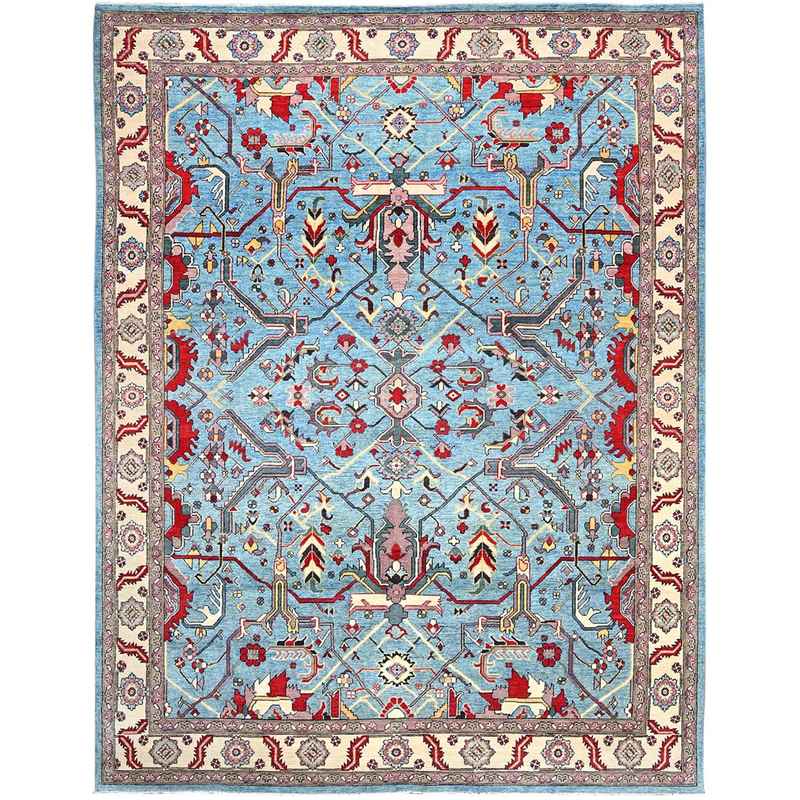 9’x11’10” Celestial Blue, Heriz Geometric All Over Design, Vegetable Dyes, Densely Woven, Soft Wool, Hand Knotted Oriental Rug Sh86158