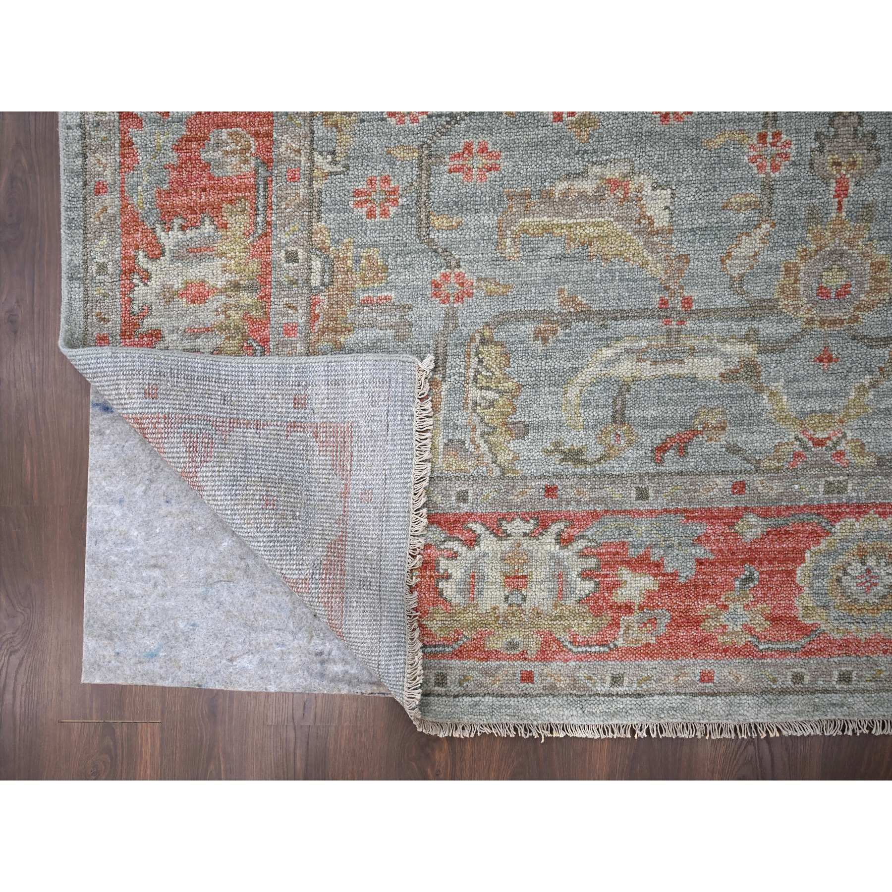9’x11’10” Contented Green With Portia Red Border, Hand Knotted Lush and Plush Supple Collection, All Wool Soft Pile, Tone On Tone Oushak Design, Natural Dyes Oriental Rug Sh84893