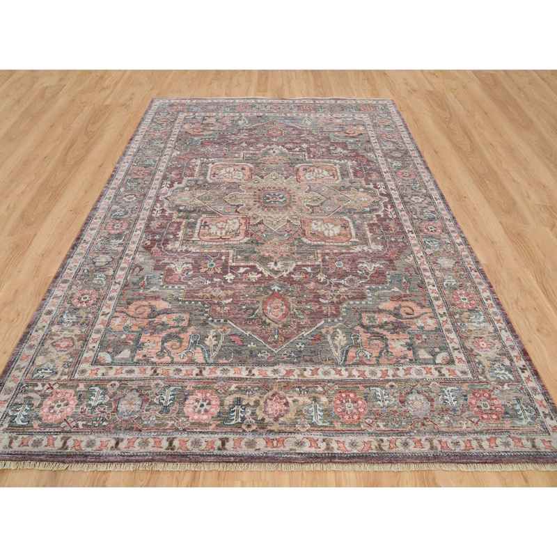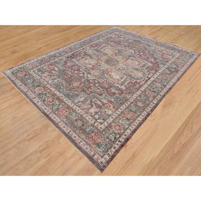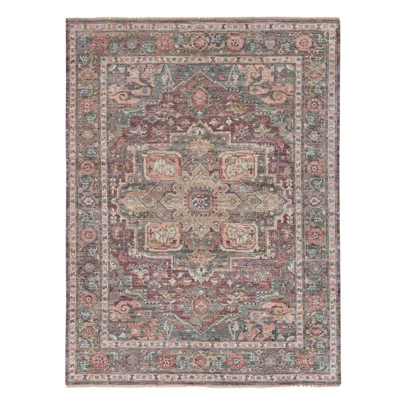 9’x11’10” Garnet Red, Extra Soft Wool, Hand Knotted, Heriz Revival, Plush and Lush Soft Pile, Oriental Rug Sh65847