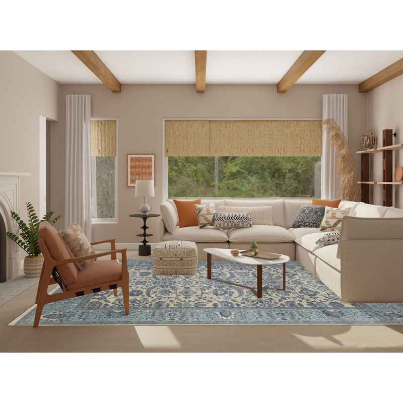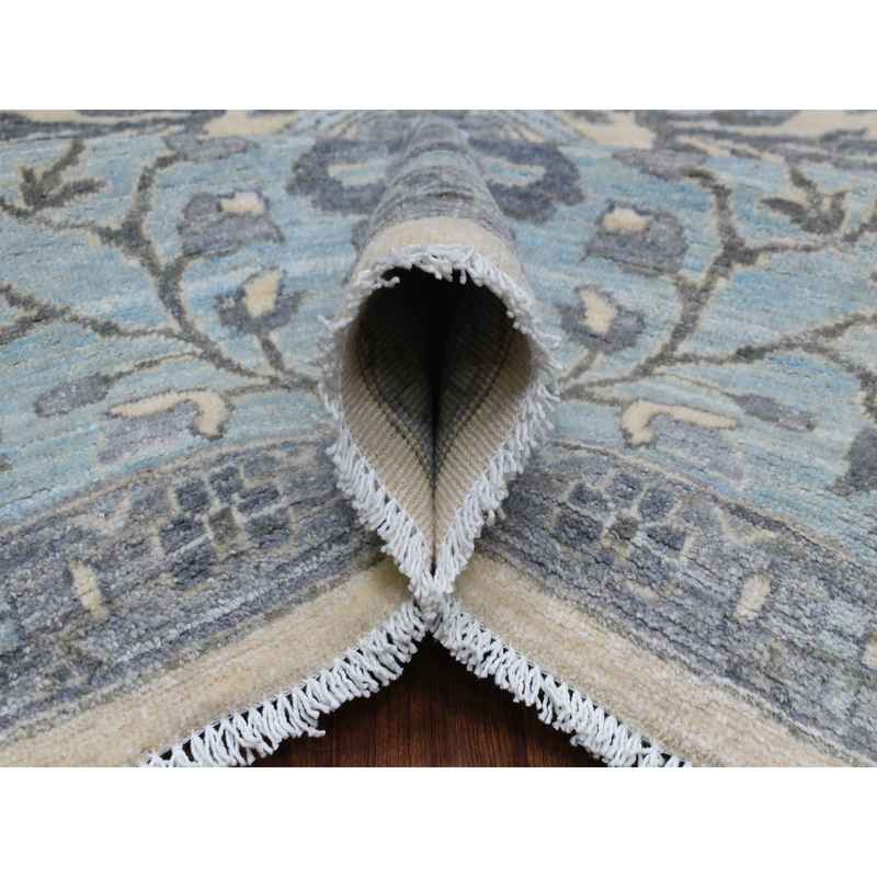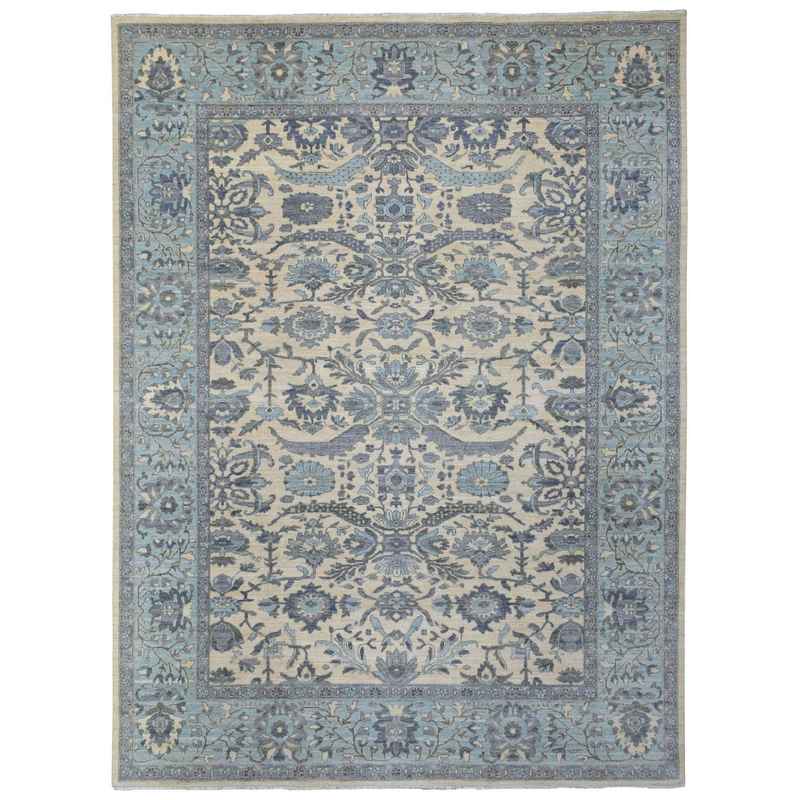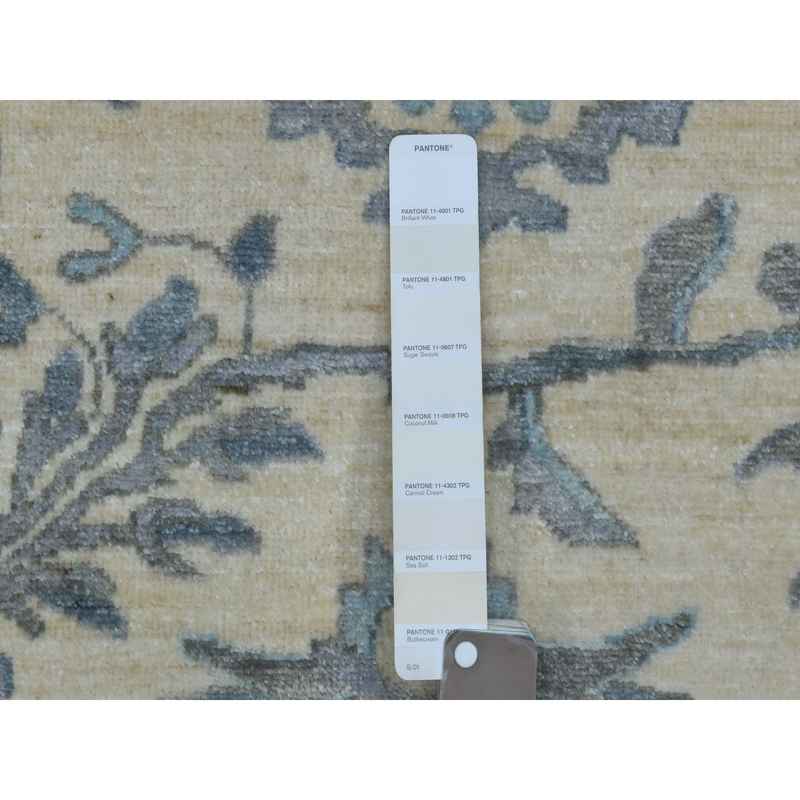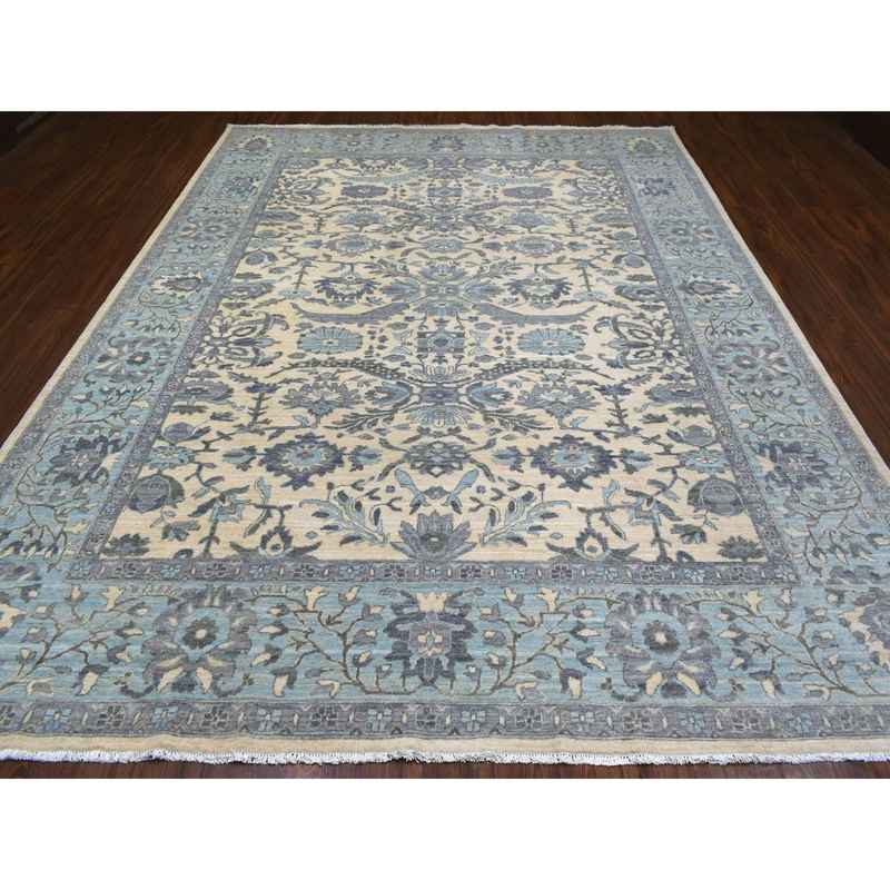 9’x11’10” Ivory Afghan Peshawar with All Over Motifs Organic Wool Hand Knotted Oriental Rug Sh70317