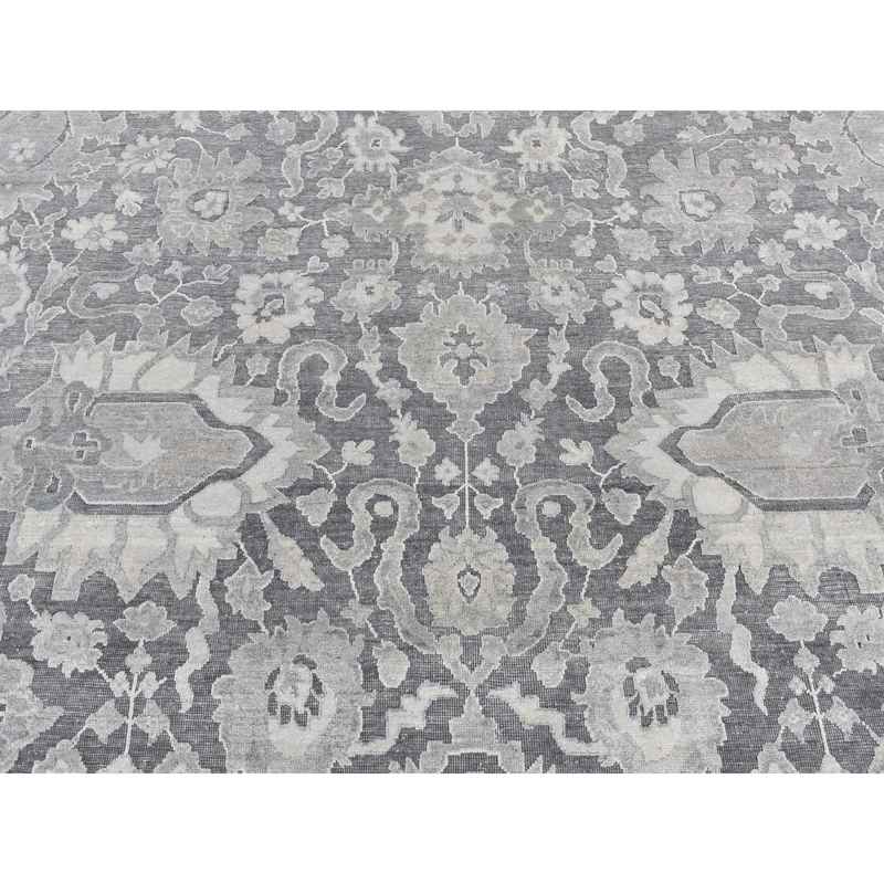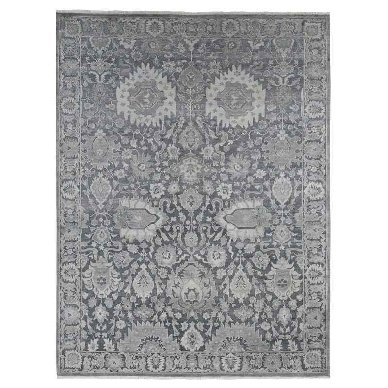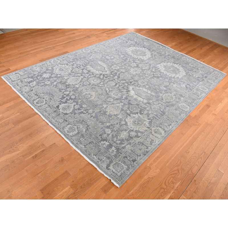 9’x11’10” Medium Gray, Hand Knotted, Oushak Influence, Silk with Textured Wool, Oriental Rug Sh87078