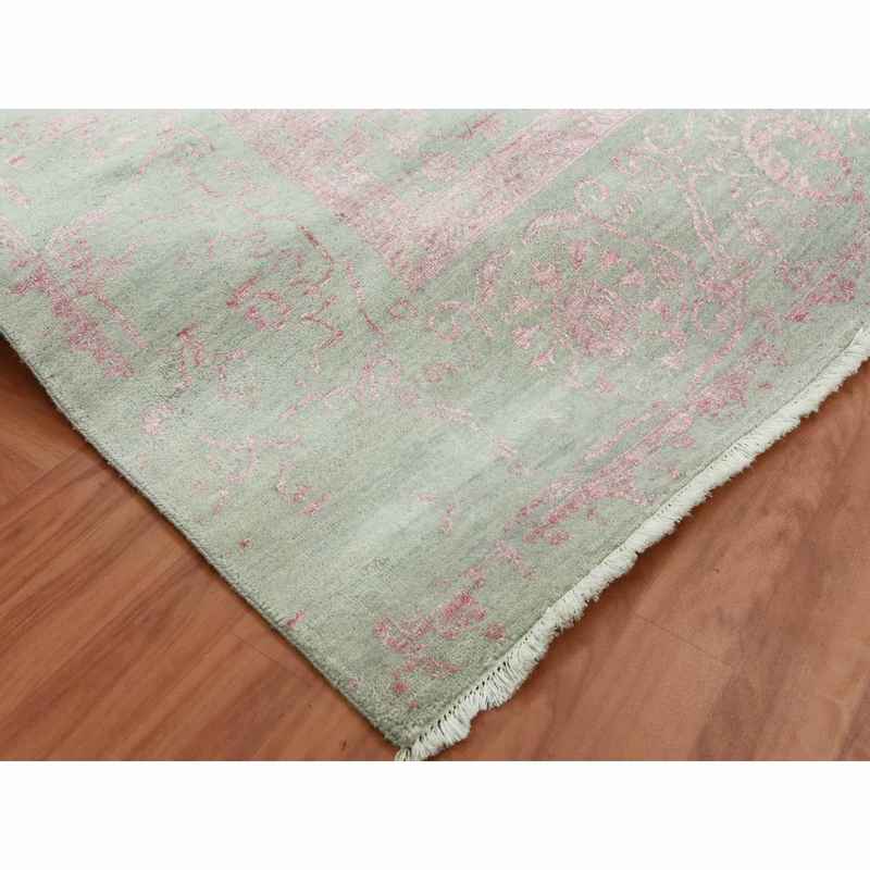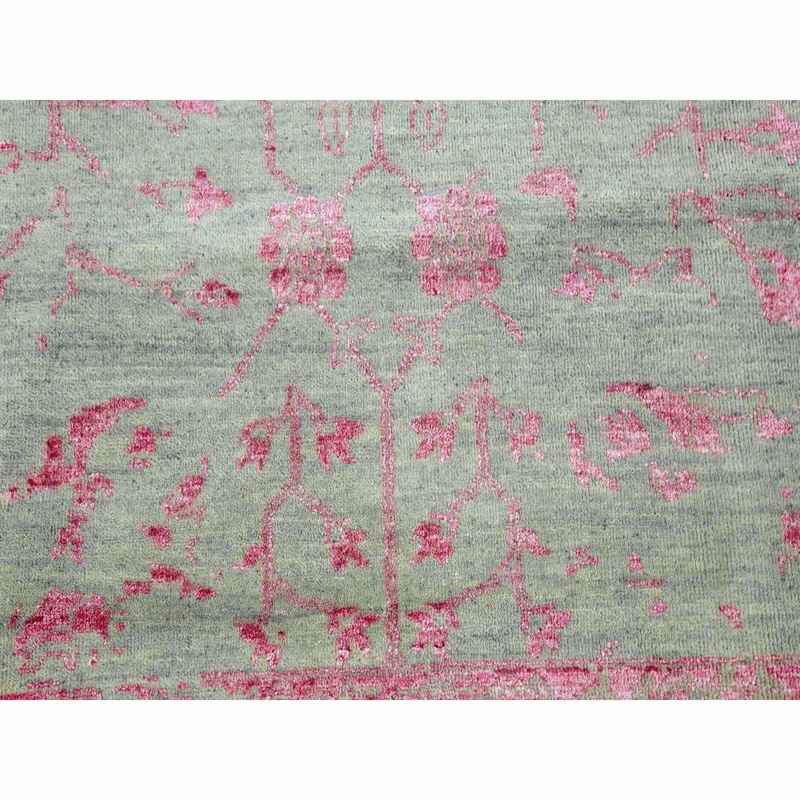 9’x11’10” Sage Gray with Touches of Pink, Broken Erased Persian Design Wool and Silk Hand Knotted, Oriental Rug Sh79284