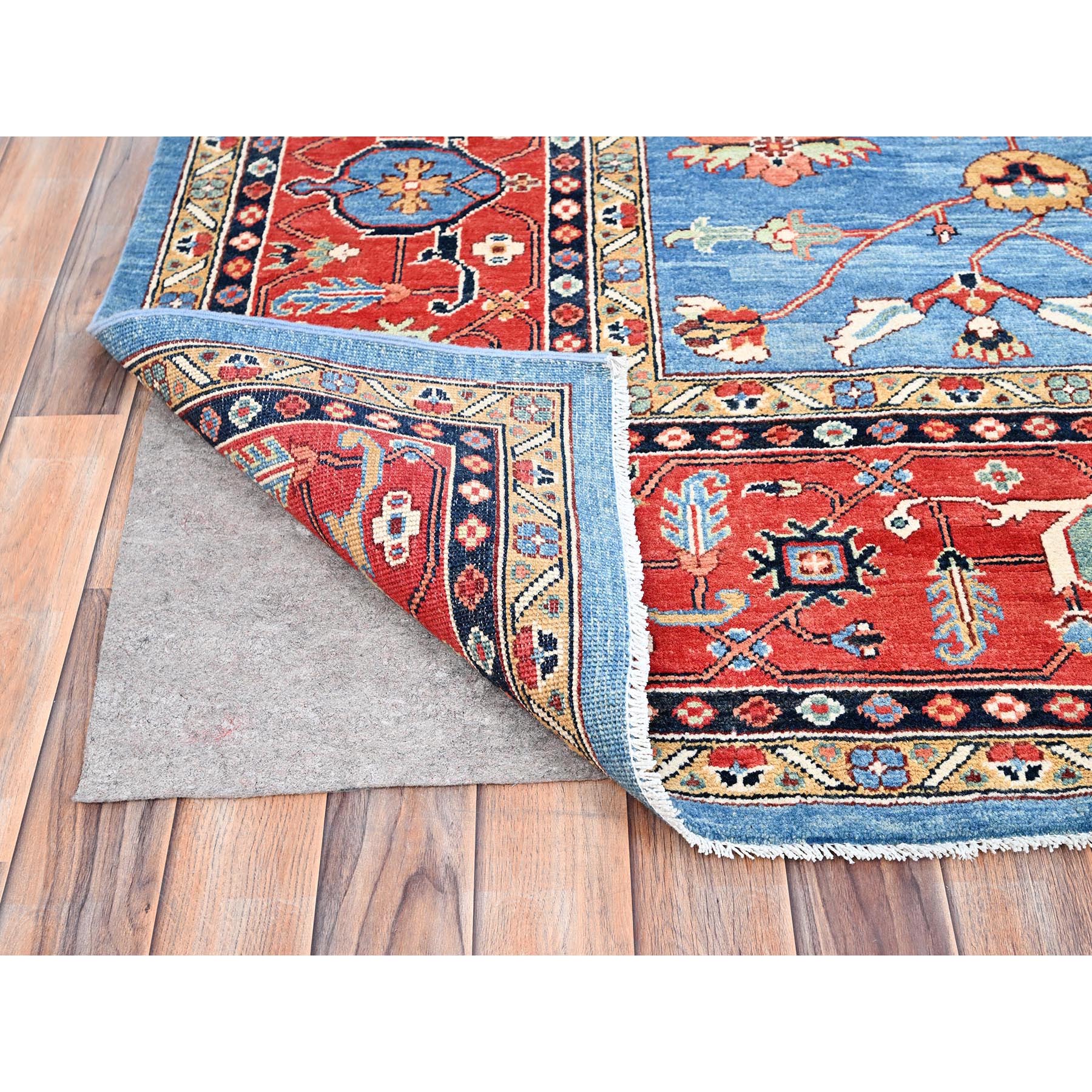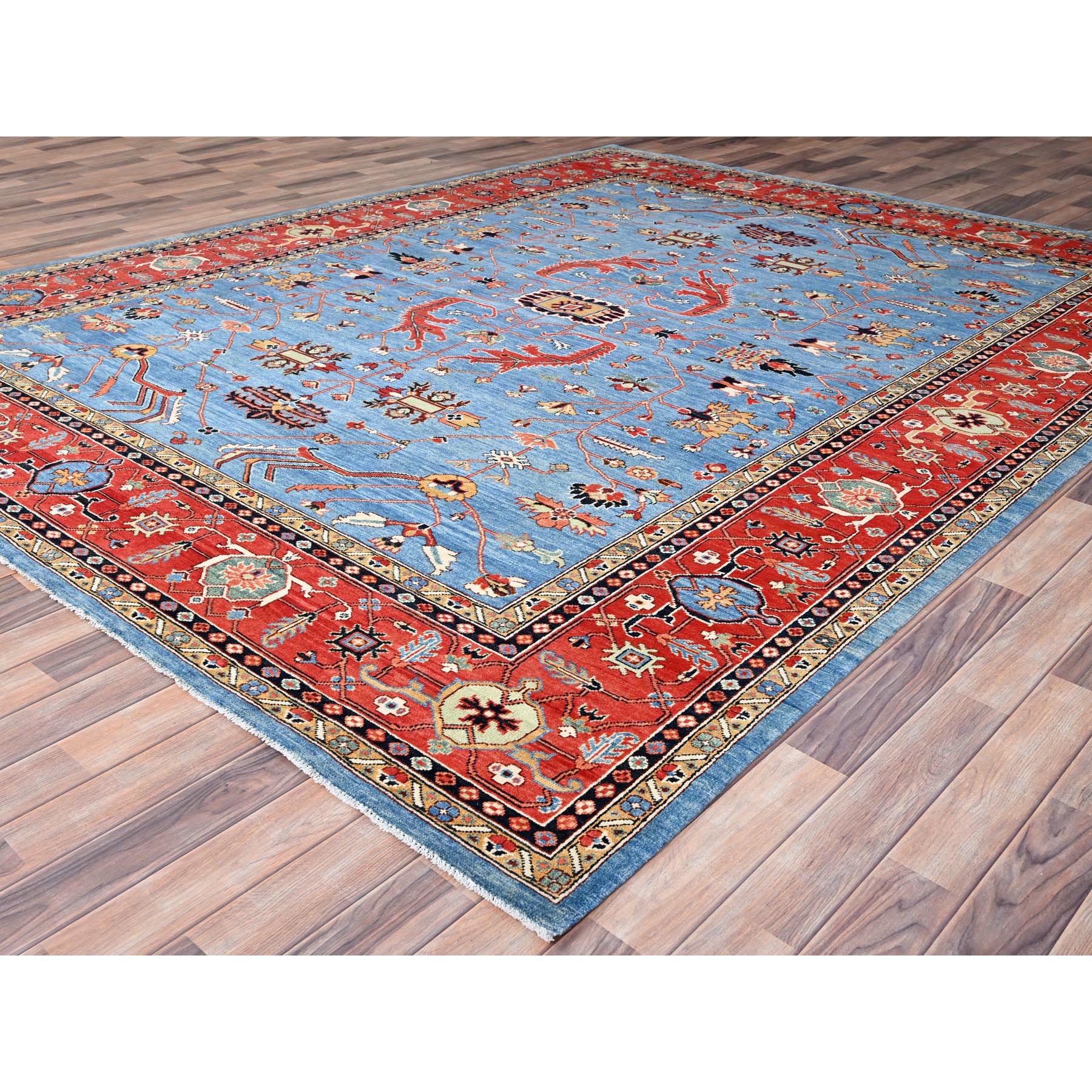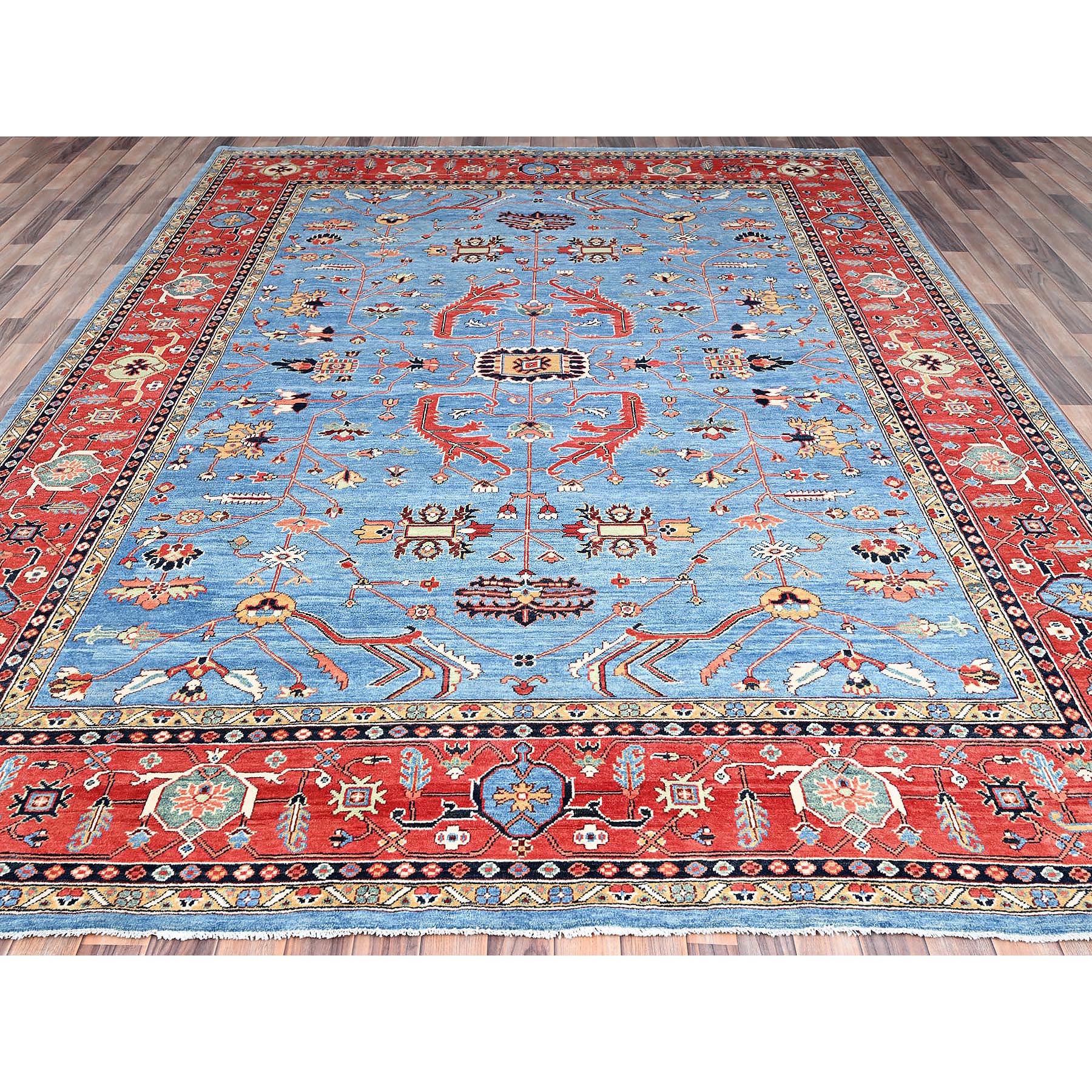 9’x11’6″ Sky Blue, Vegetable Dyes, Extra Soft Wool, Afghan Peshawar with Serapi Heriz Design, Dense Weave, Hand Knotted, Oriental Rug Sh85447