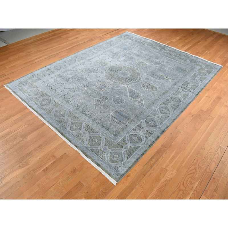 9’x11’7″ Cadet Gray, Silk with Textured Wool, Mamluk Design, Hand Knotted, Oriental Rug Sh87075