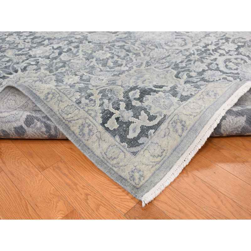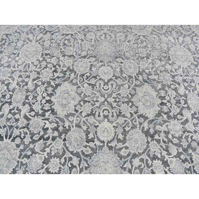 9’x11’8″ Ash Gray, Oushak Influence, All Over Design, Pure Silk with Textured Wool, Hand Knotted, Oriental Rug Sh87076