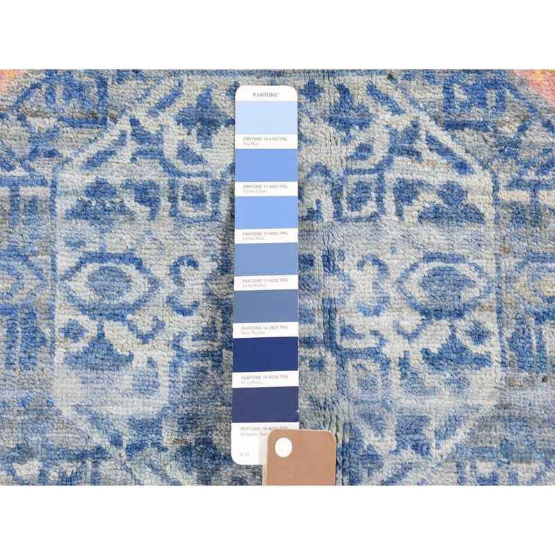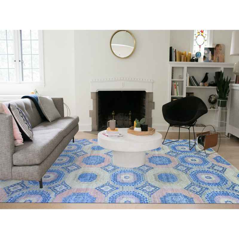 9’x11’8″ Denim Blue Mamluk Repetitive Design with Pastel Colors Hand Knotted Pure Wool Oriental Rug Sh66997