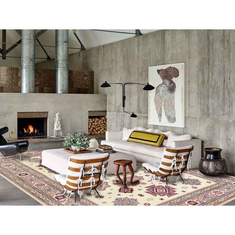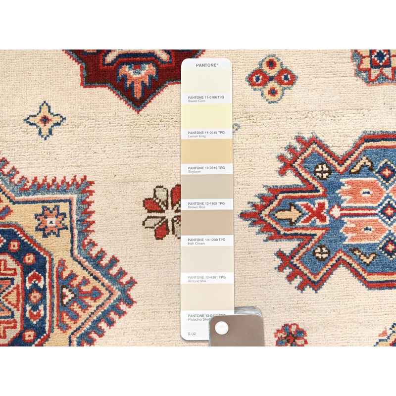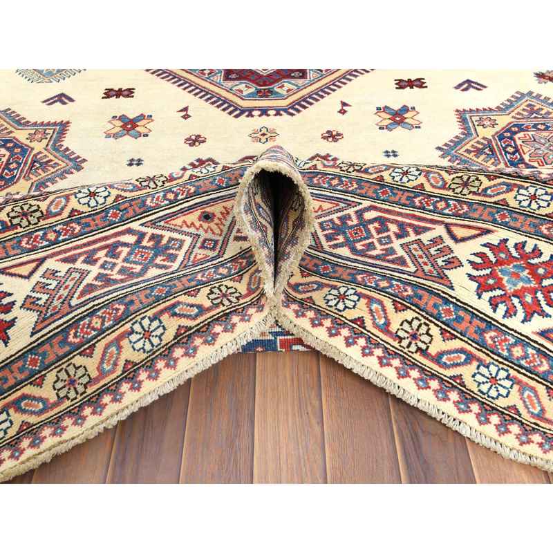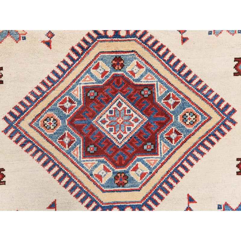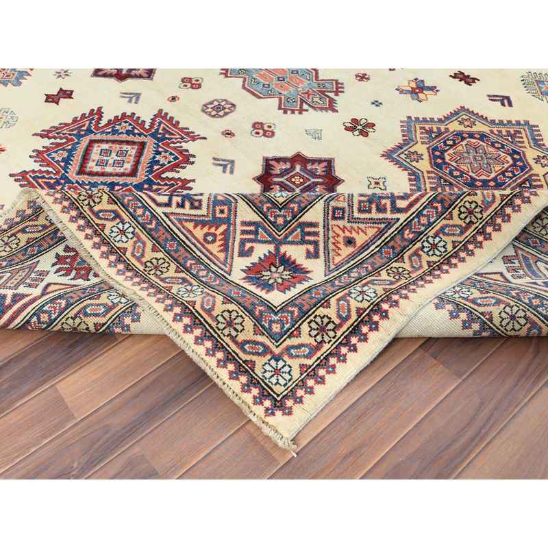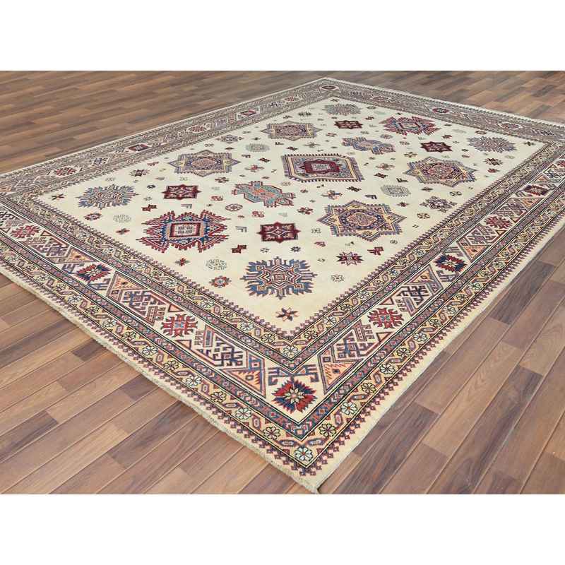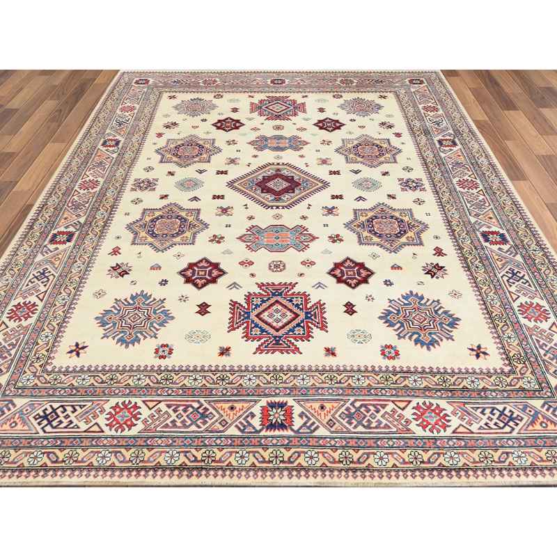 9’x11’8″ Hand Knotted, Ivory, Afghan Special Kazak with Geometric Caucasian Design, Pure Wool, Oriental Rug Sh61537