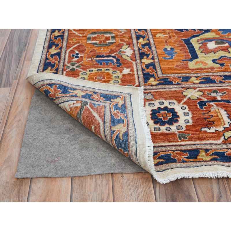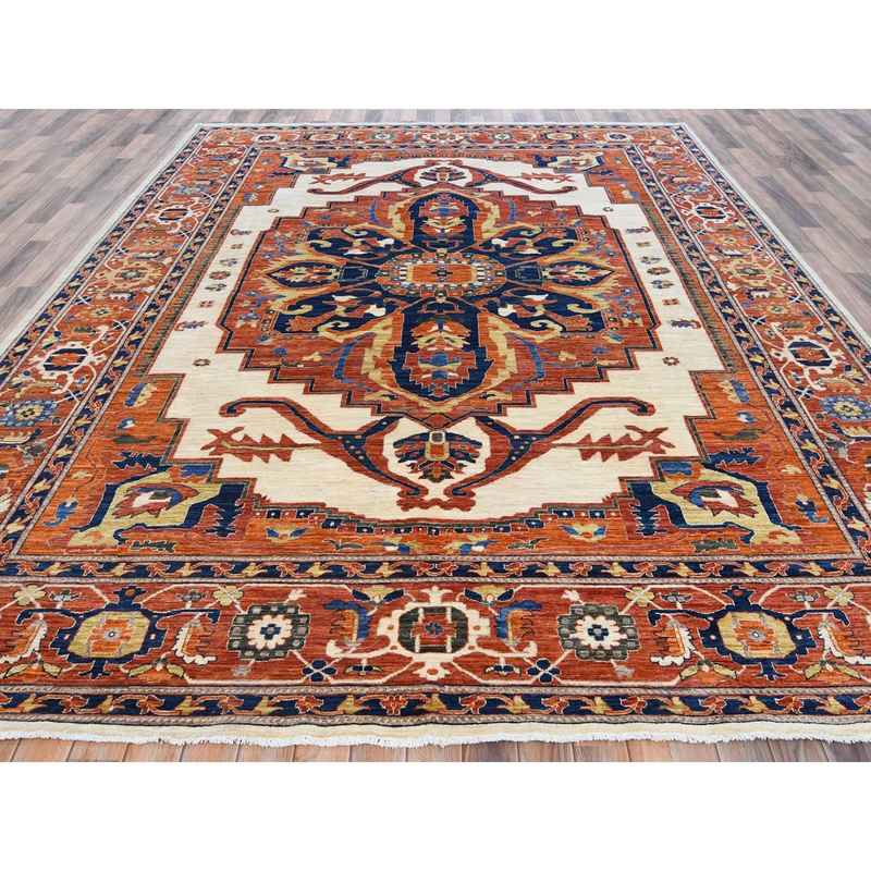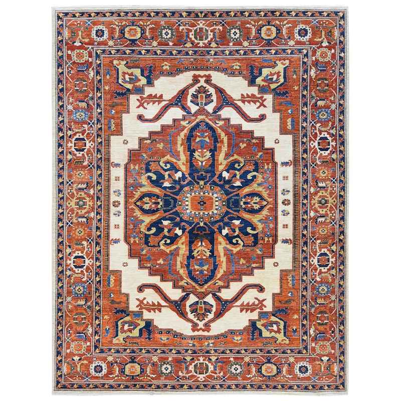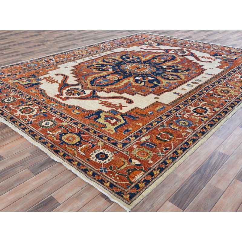 9’x11’8″ Rust Red, Antiqued Persian Serapi Inspired Design, Ghazni Wool, 200 KPSI Densely Woven, Hand Knotted, Natural Dyes Oriental Rug Sh81272
