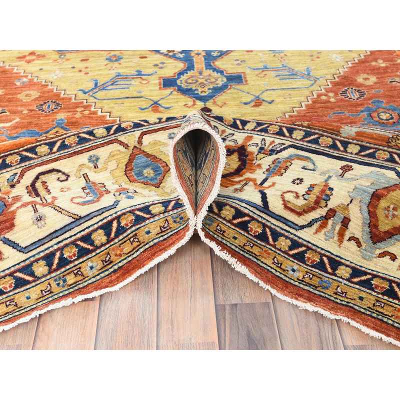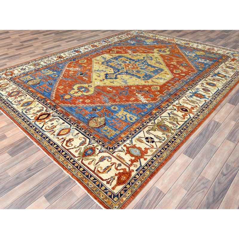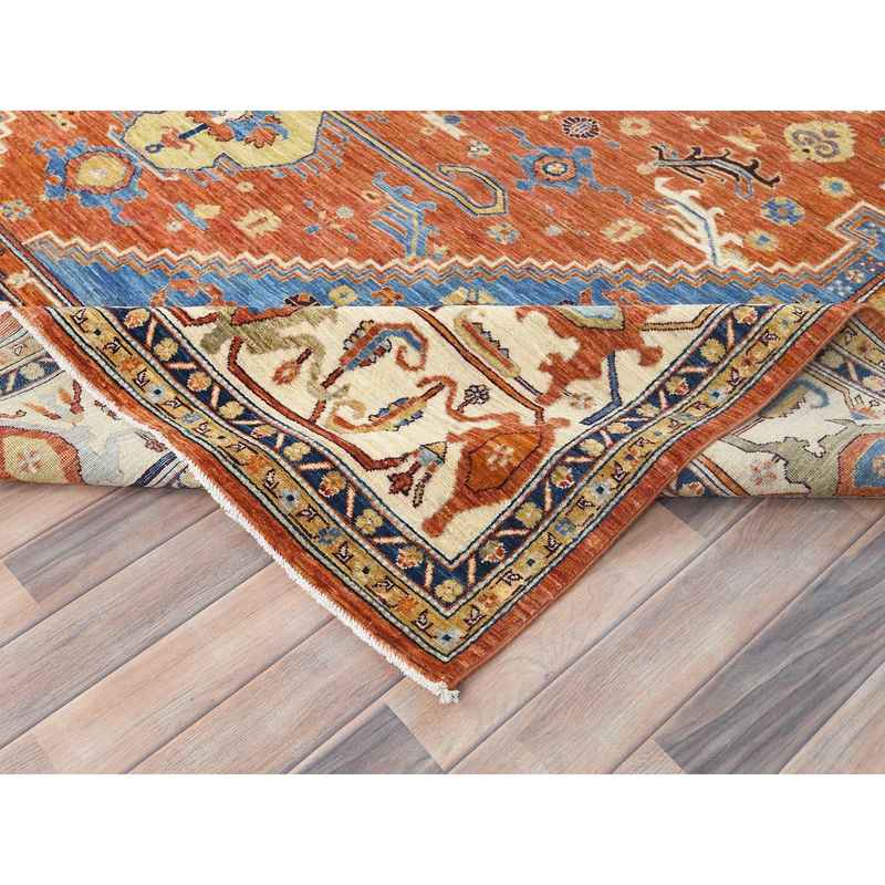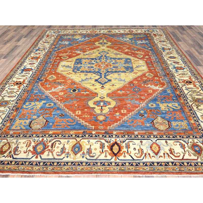 9’x11’9″ Air Force Blue, Serapi Heriz Design 200 KPSI, Natural Dyes Densely Woven, Soft Wool Hand Knotted, Oriental Rug Sh82880