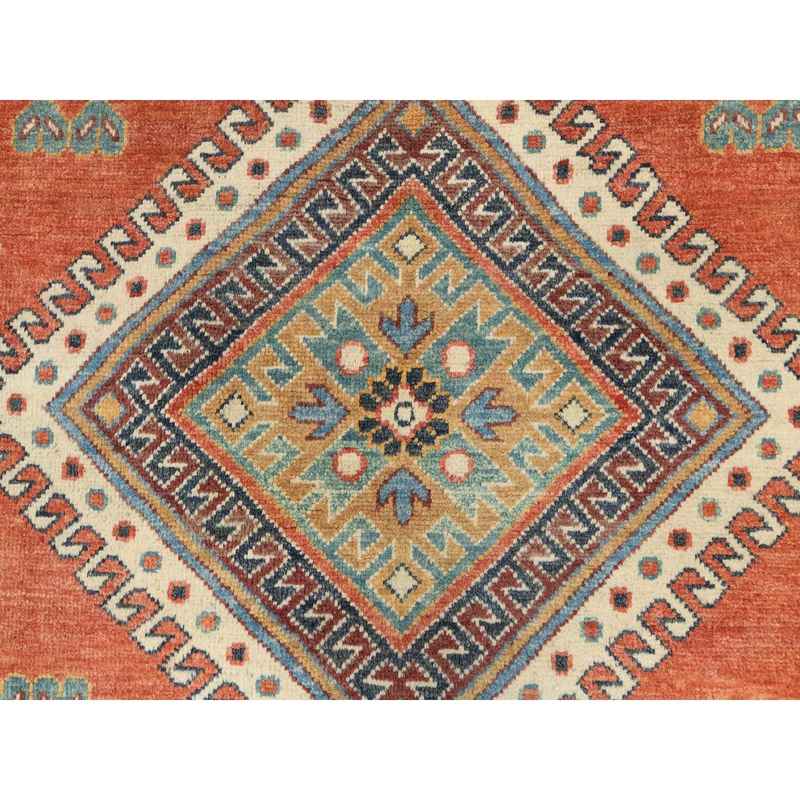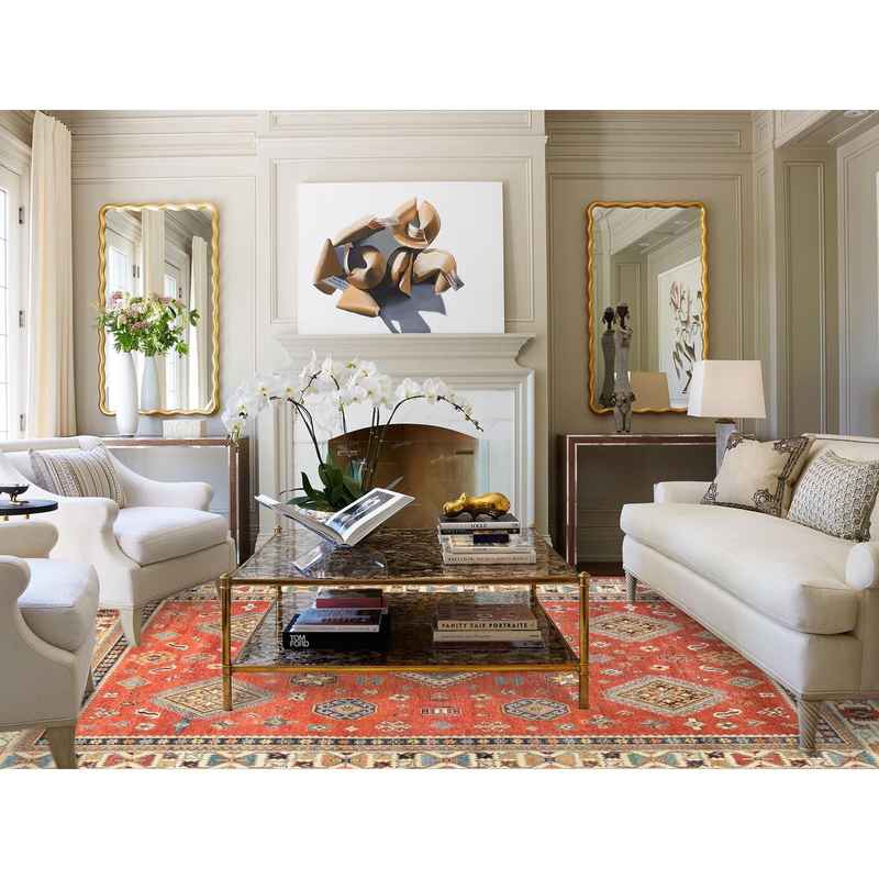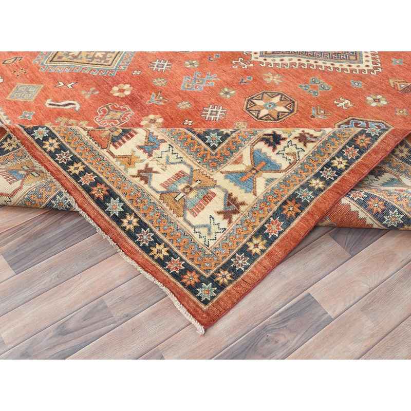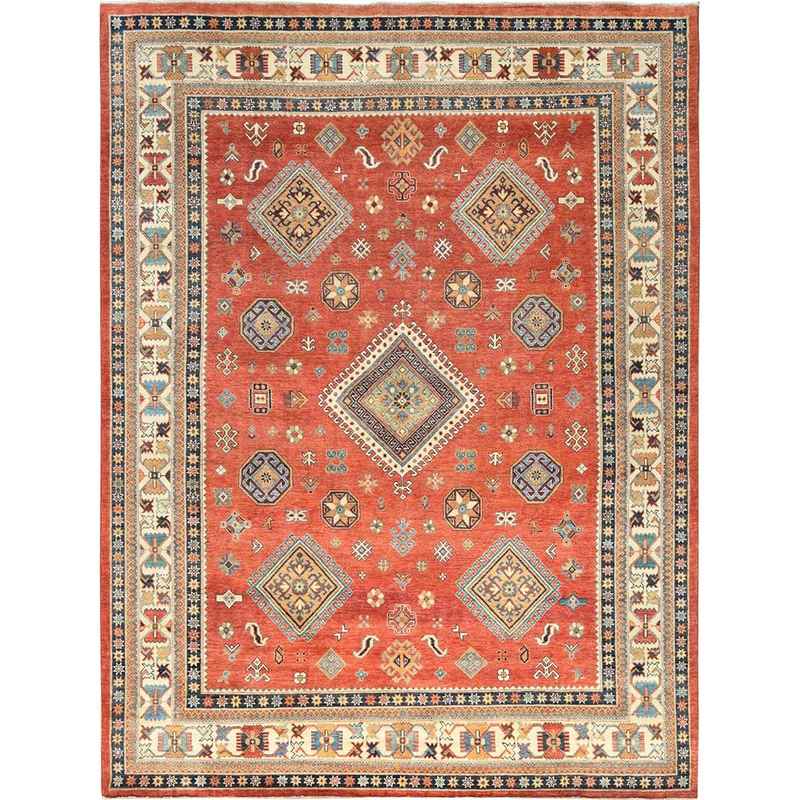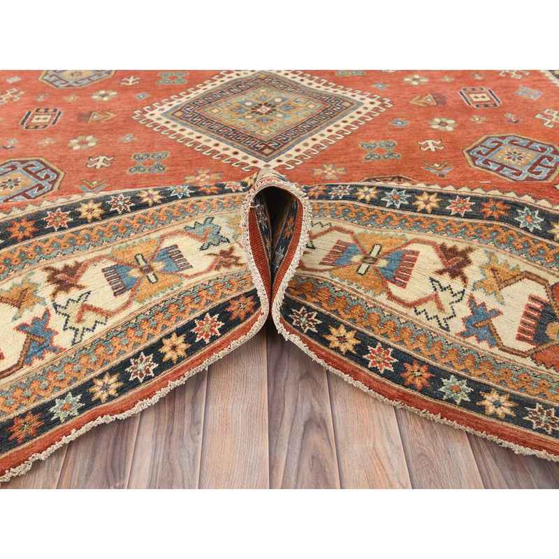 9’x11’9″ Crimson Red, Special Kazak with All Over Medallions Natural Dyes, Extra Soft Wool Hand Knotted, Oriental Rug Sh82709