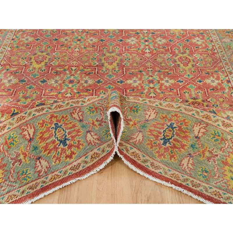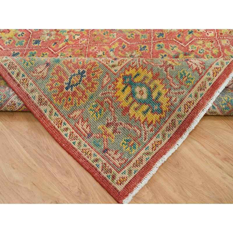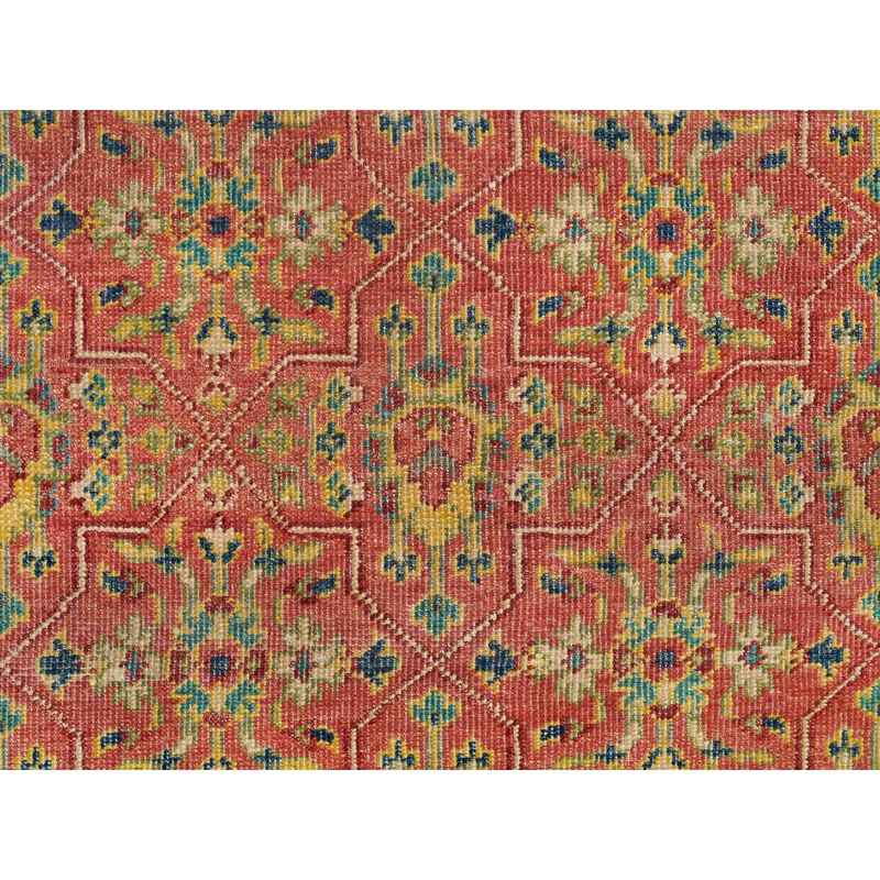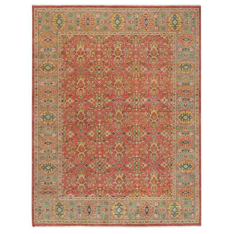 9’x11’9″ Fire Brick Red, Hand Knotted, Antiqued Oushak Reimagined Repetitive Star and Rosette Design, Sheared Low, Soft Wool, Oriental Rug Sh65937