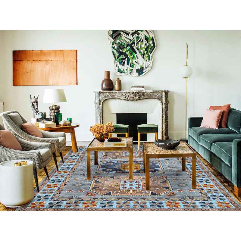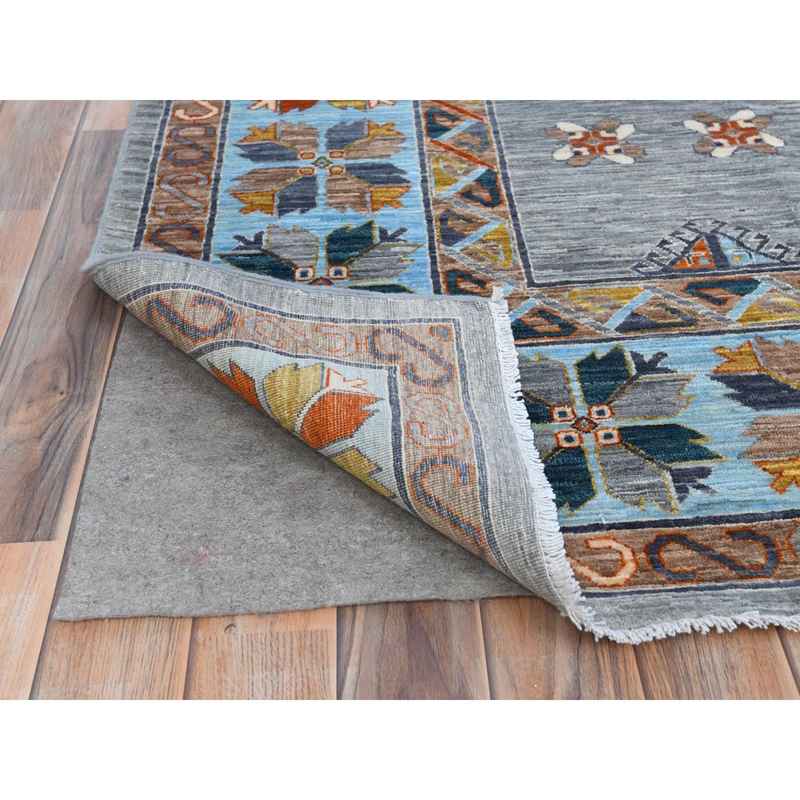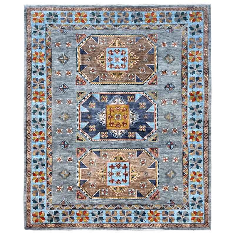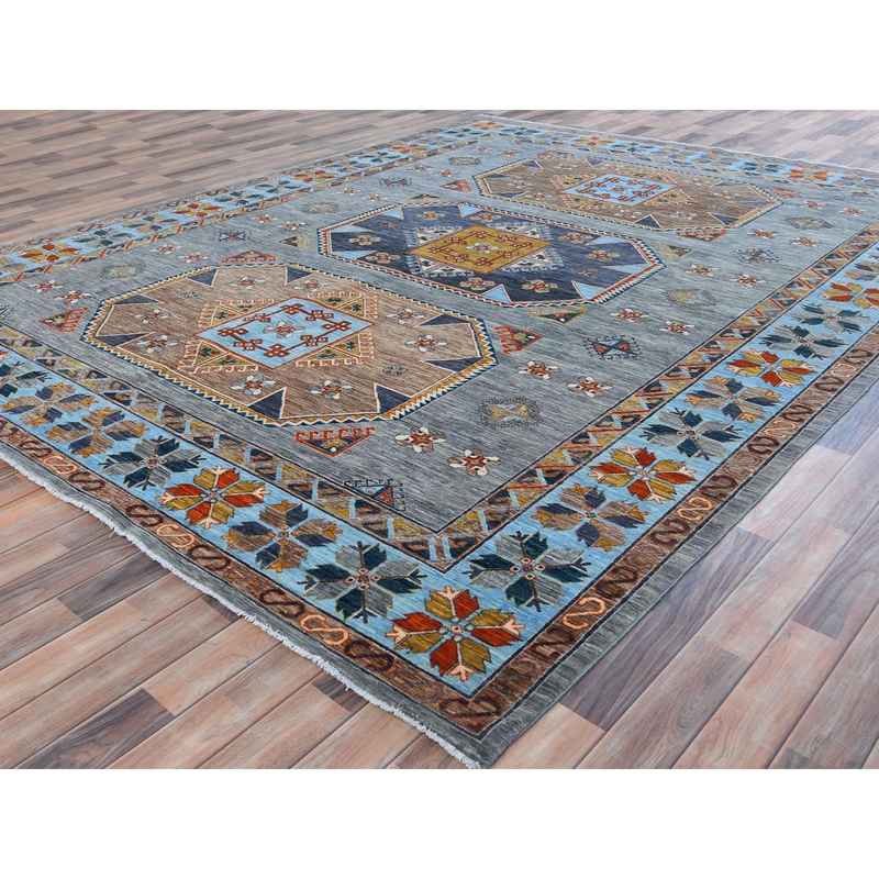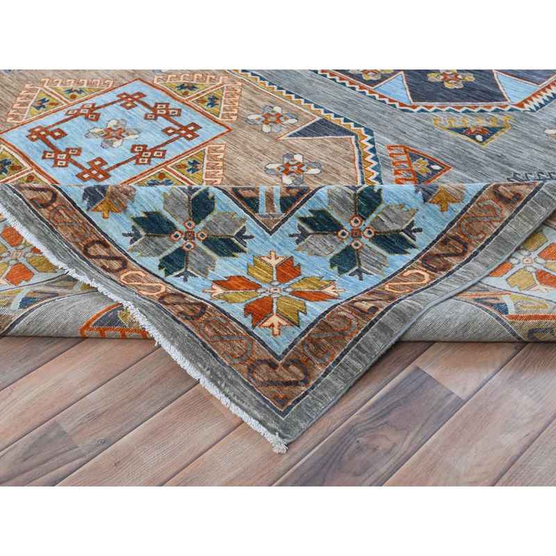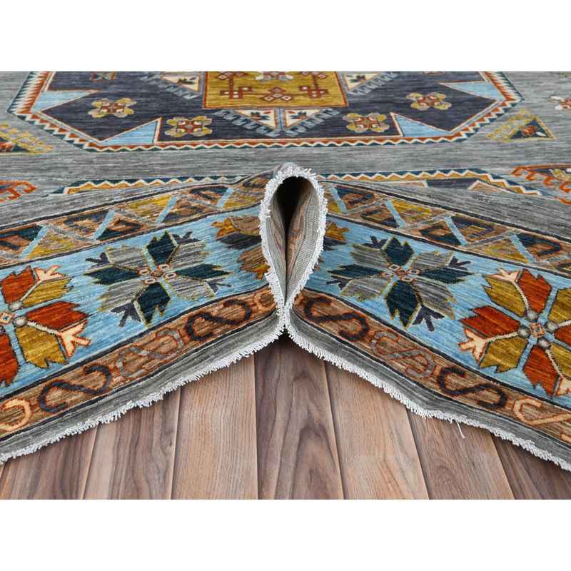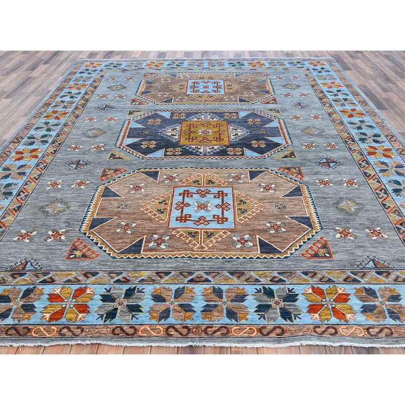 9’x11’9″ Gray Armenian Inspired Caucasian Design, 200 KPSI Denser Weave, Hand Knotted, Natural Dyes Ghazni Wool Oriental Rug Sh81273