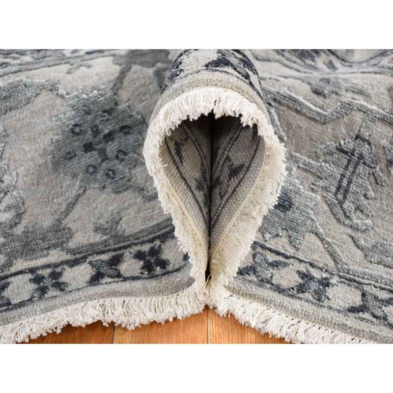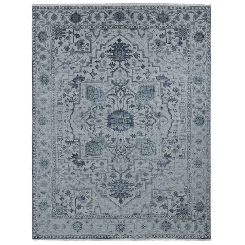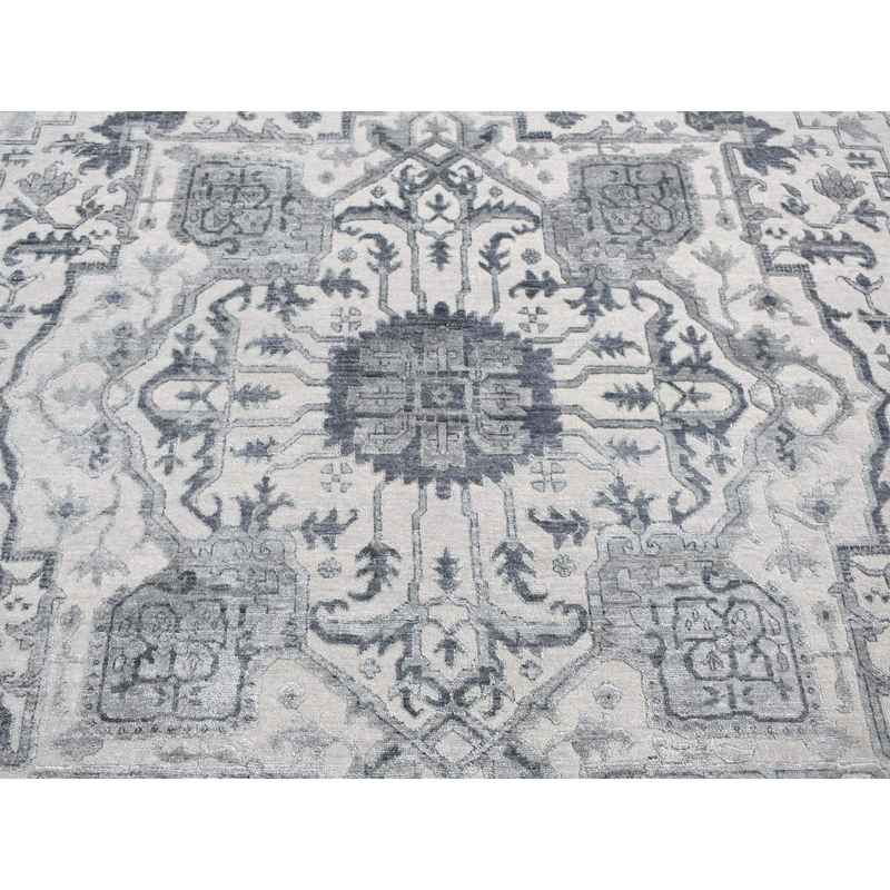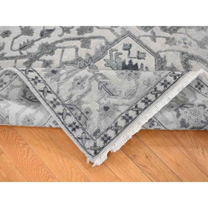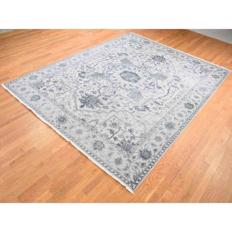 9’x12′ Ash Grey, Heriz Design with All Over Pattern Vegetable Dyes, Wool And Silk Hand Knotted, Oriental Rug Sh80734