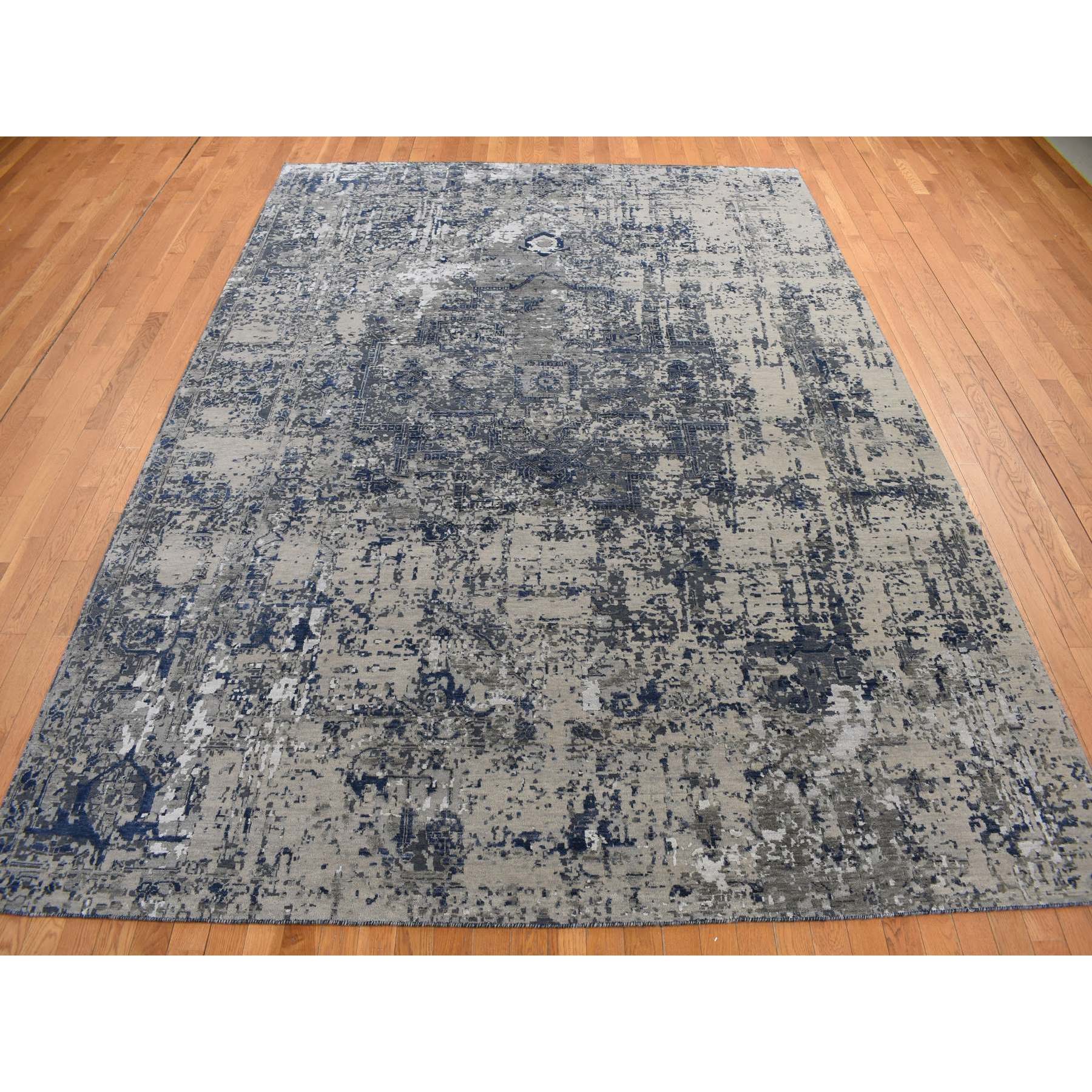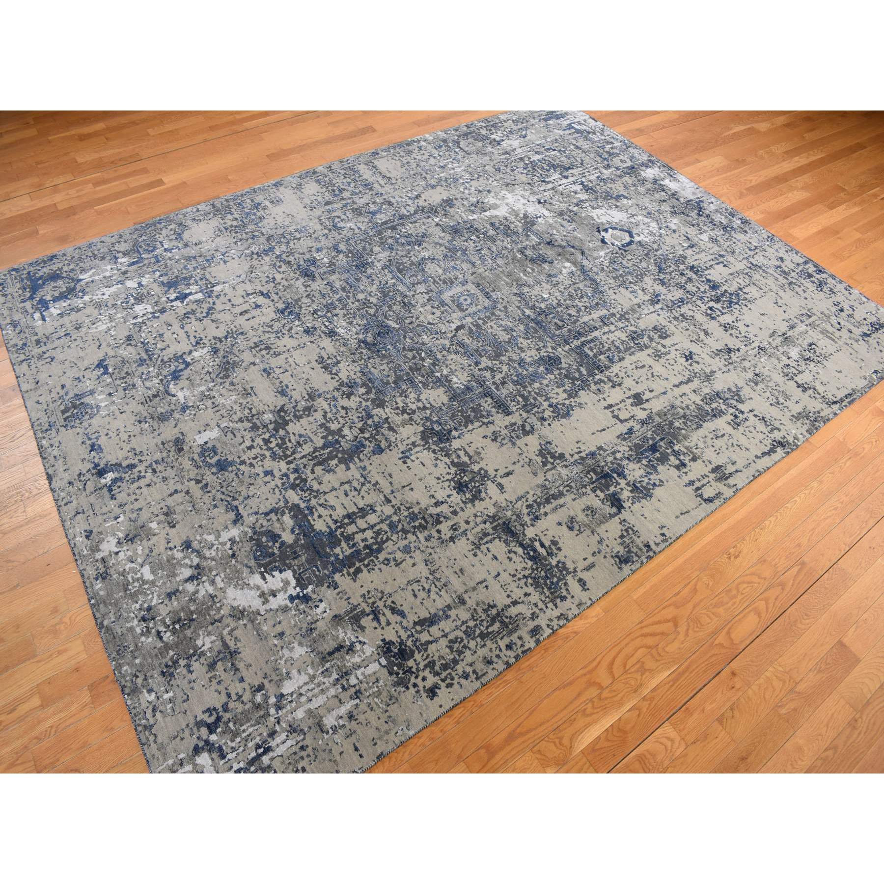 9’x12′ Astros Navy Blue, Erased Heriz Design, Wool and Silk, Hand Knotted, Fine Oriental Rug Sh78154