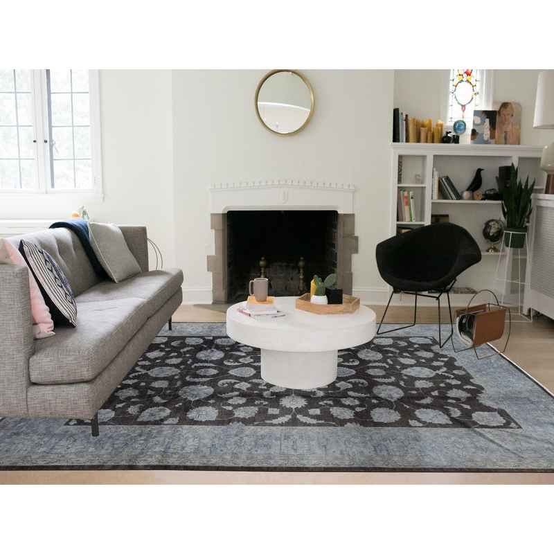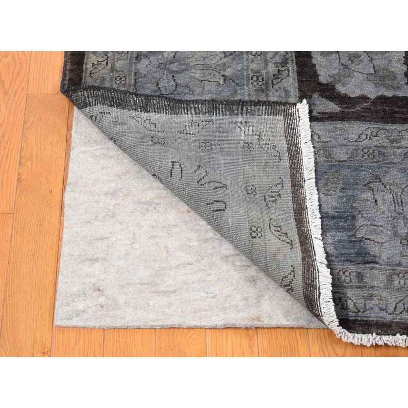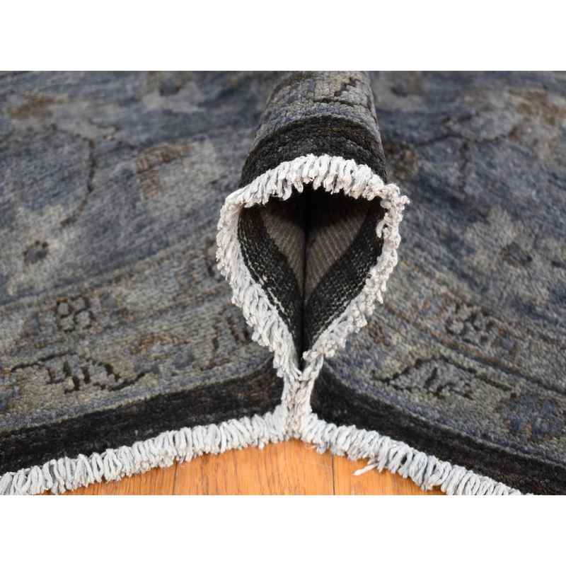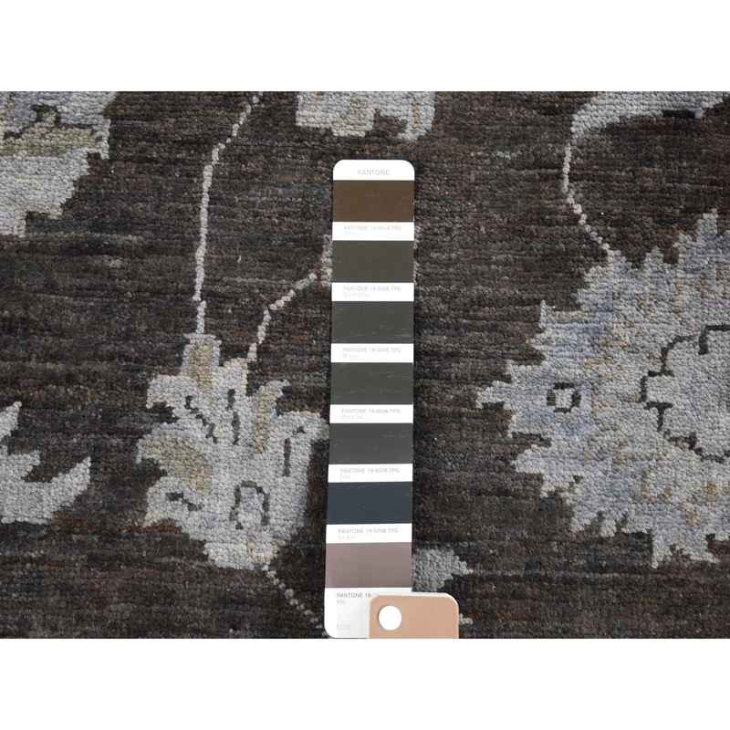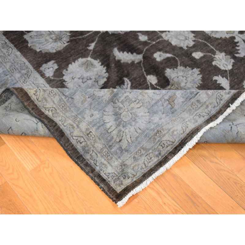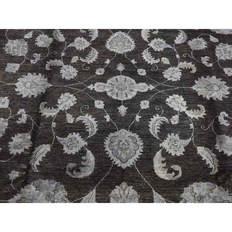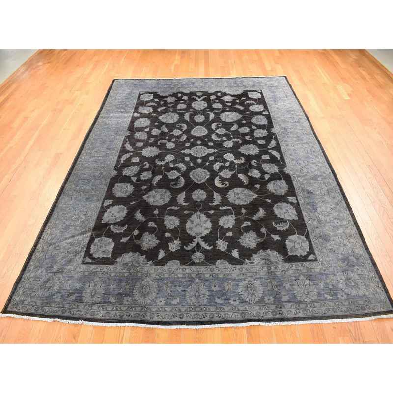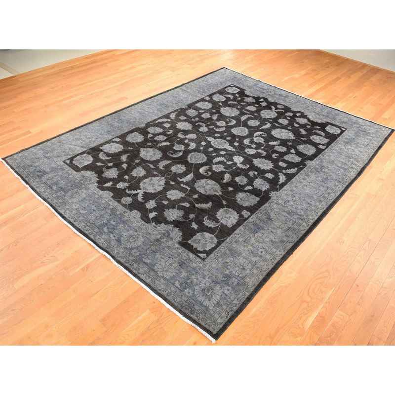 9’x12′ Black Overdyed Afghan Peshawar with All Over Design, Hand Knotted Pure Wool, Oriental Rug Sh80660