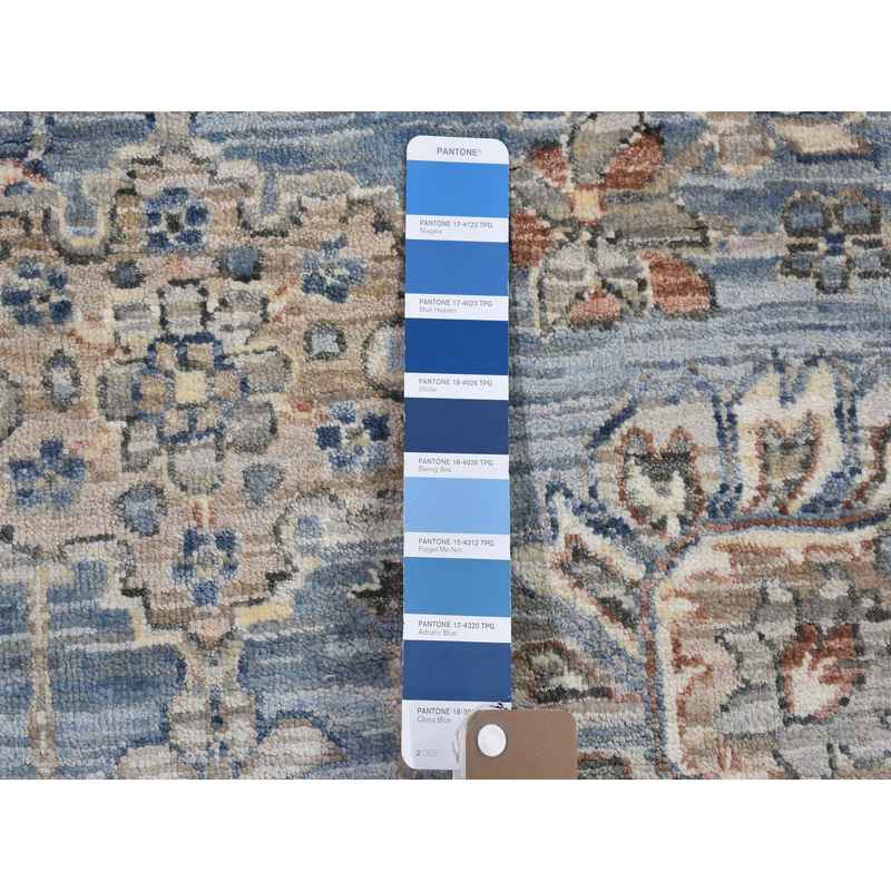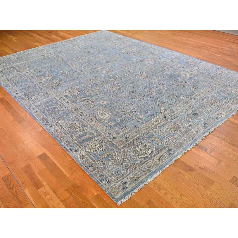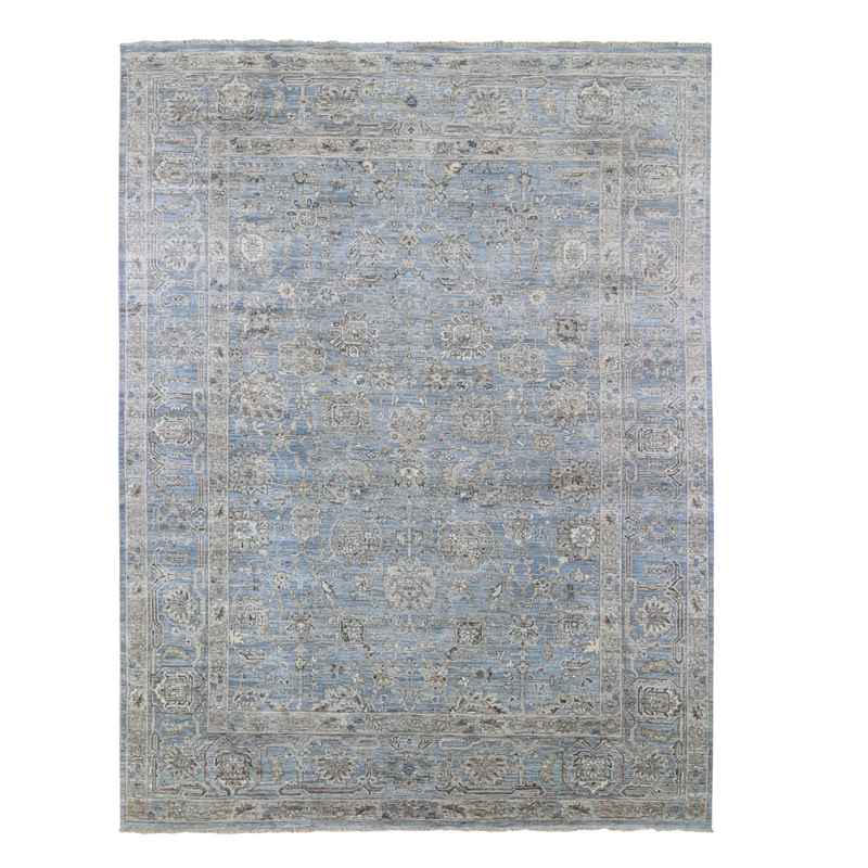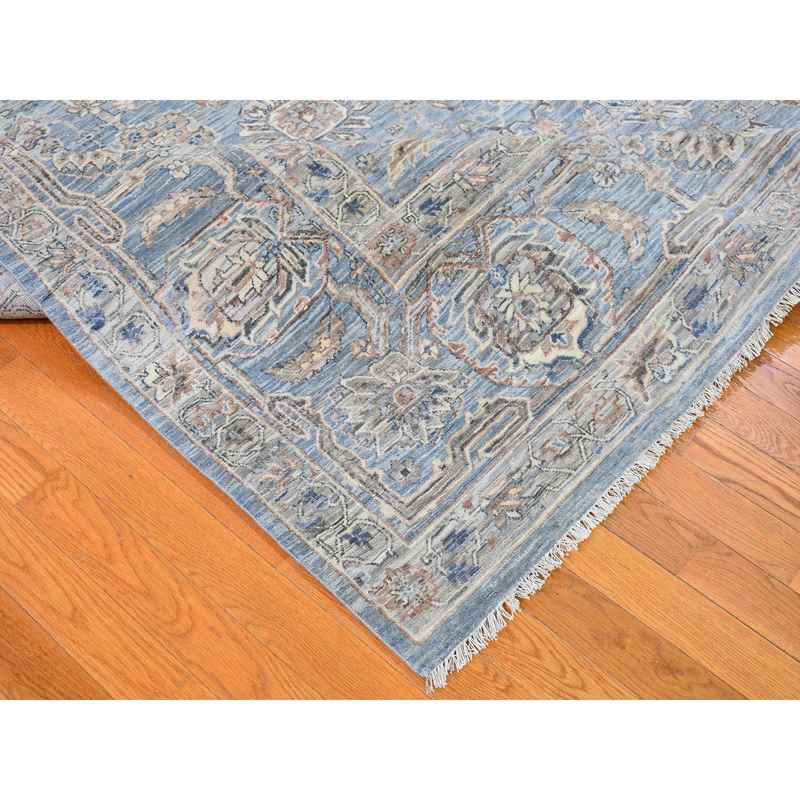 9’x12′ Blue Wool and Silk Abrash Denser Weave Vegetable Dyes All Over Heriz Design Hand Knotted Oriental Rug Sh66478