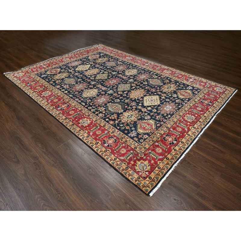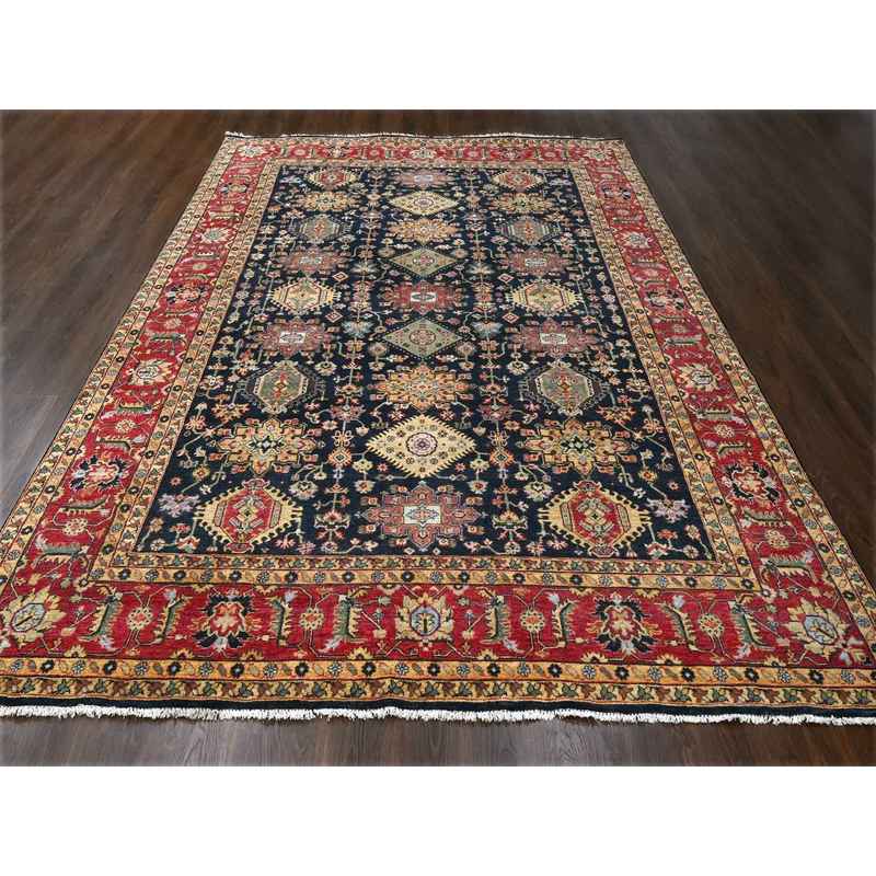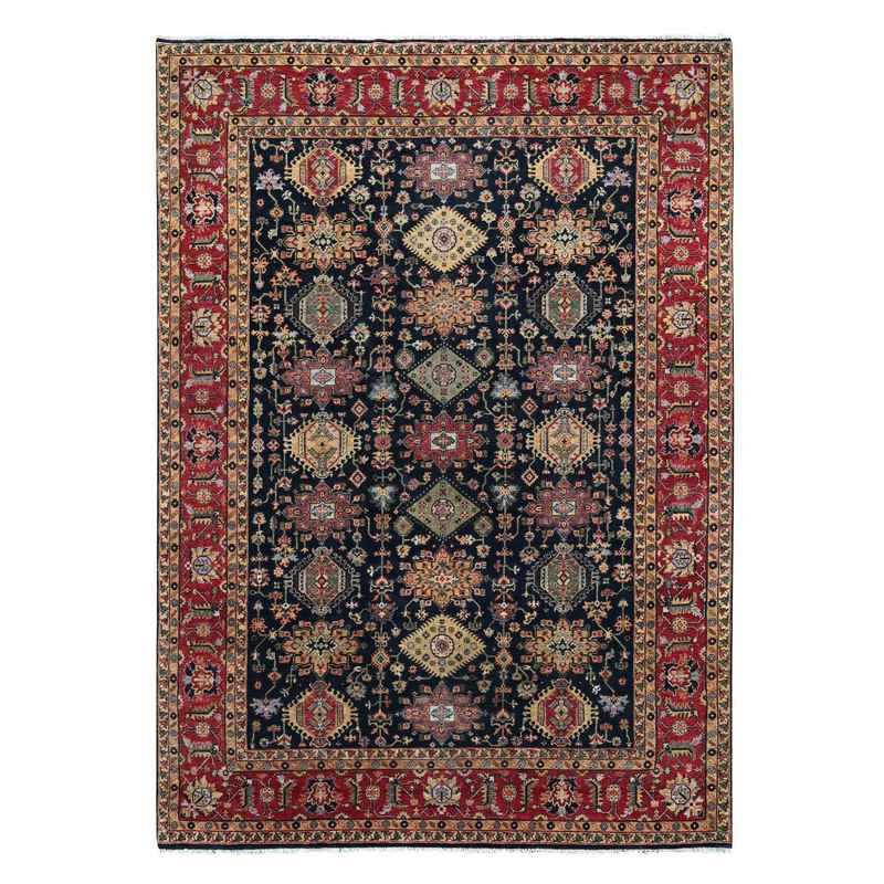 9’x12′ Carbon Black With Turkey Red, Karajeh Design with All Over Pattern, Vegetable Dyes, Pure Wool, Soft Pile, Hand Knotted, Oriental Rug Sh84457