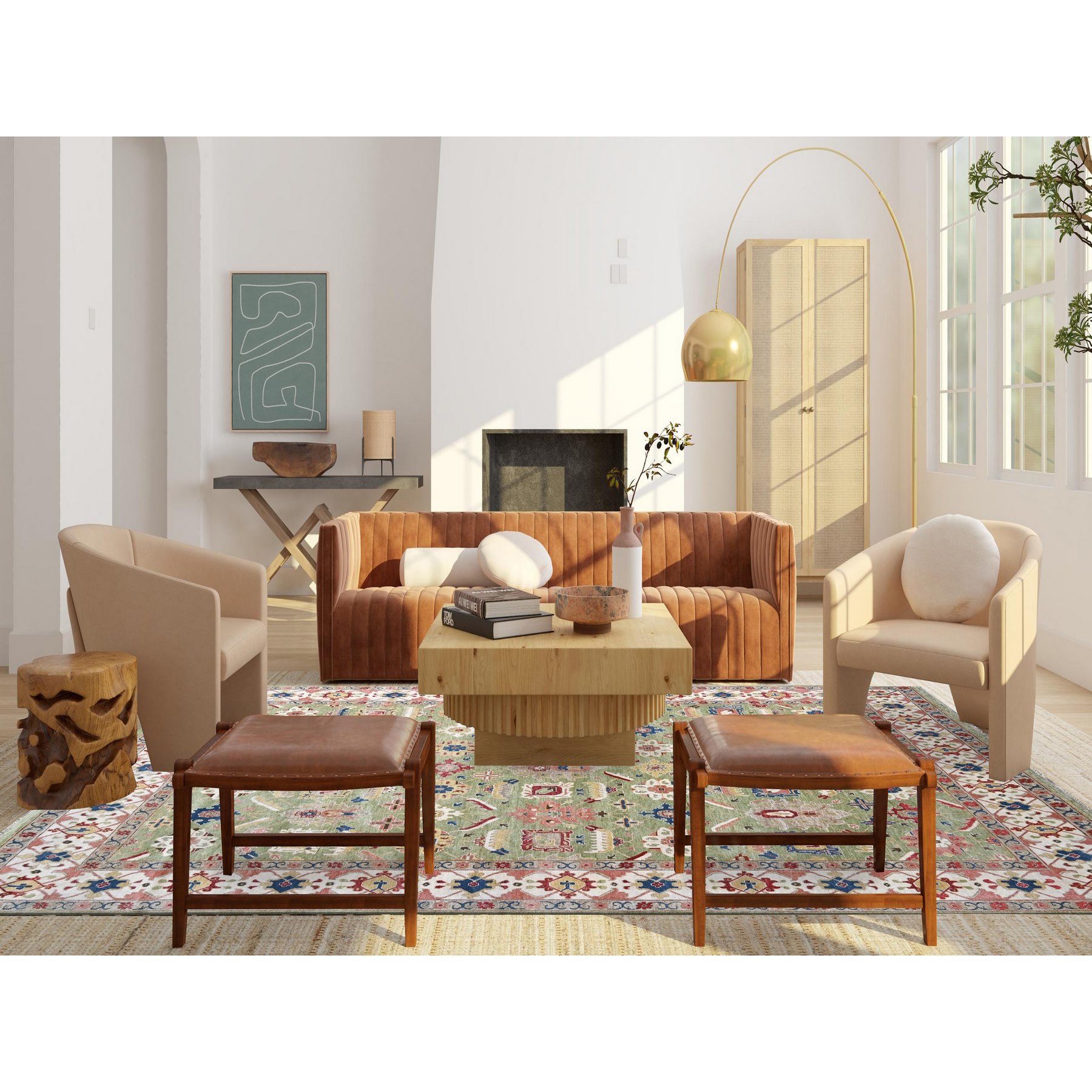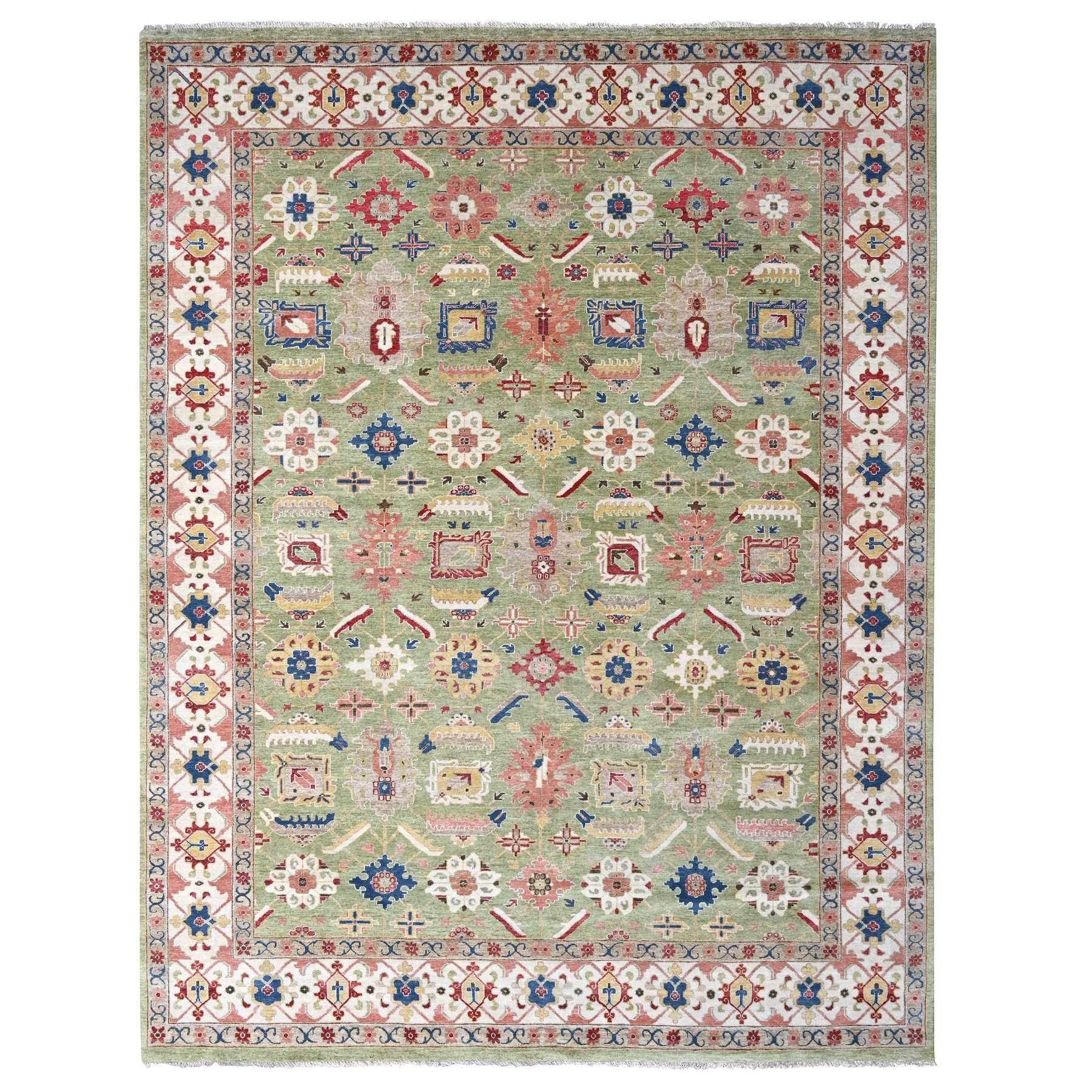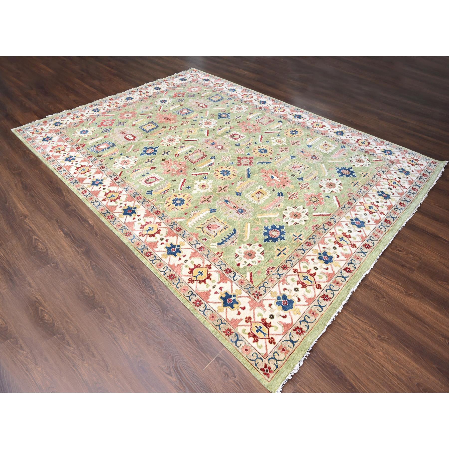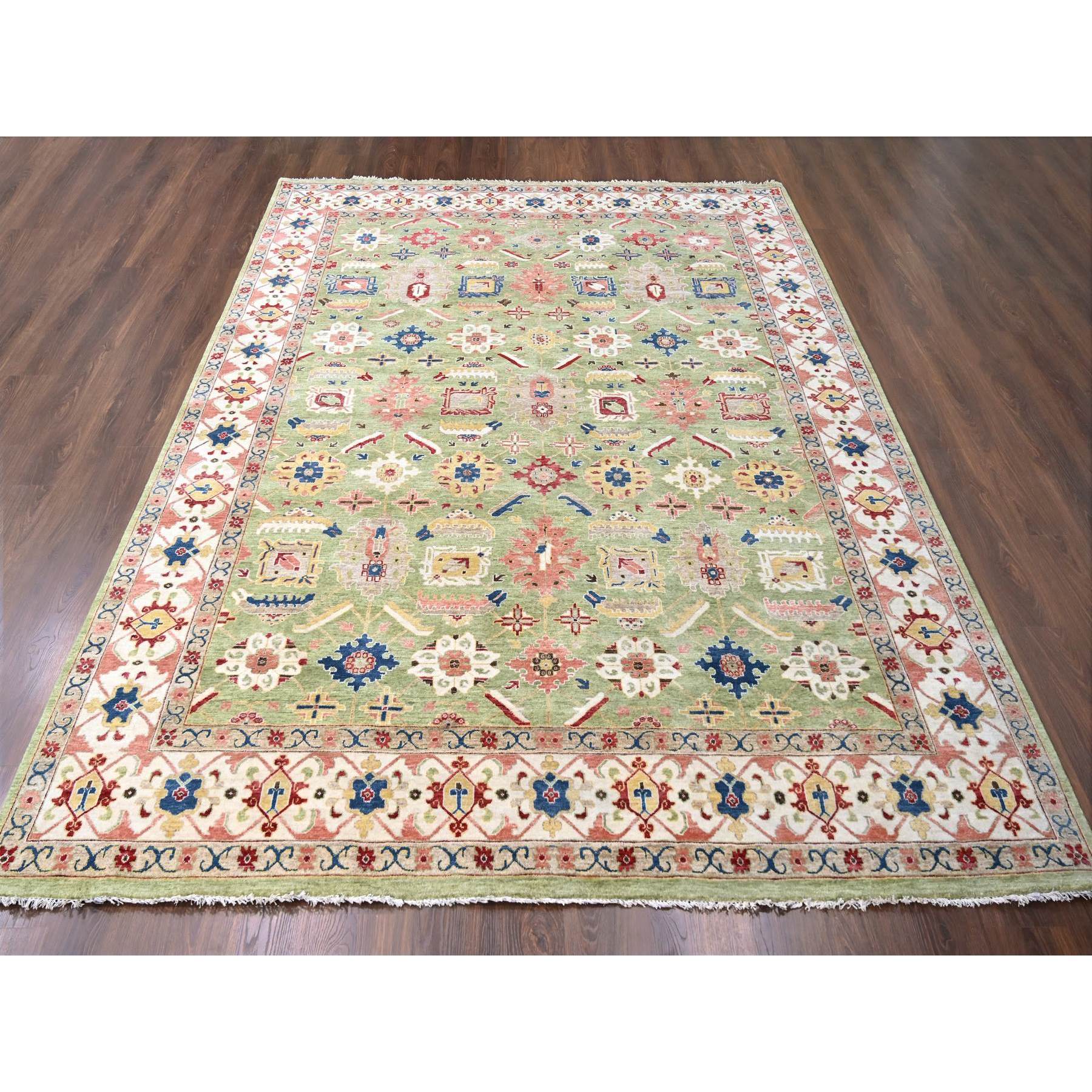 9’x12′ Eton Green With Decorators White, Vegetable Dyes, Plush and Lush, Green Heriz All Over Design, Pure Wool, Hand Knotted, Oriental Rug Sh84920