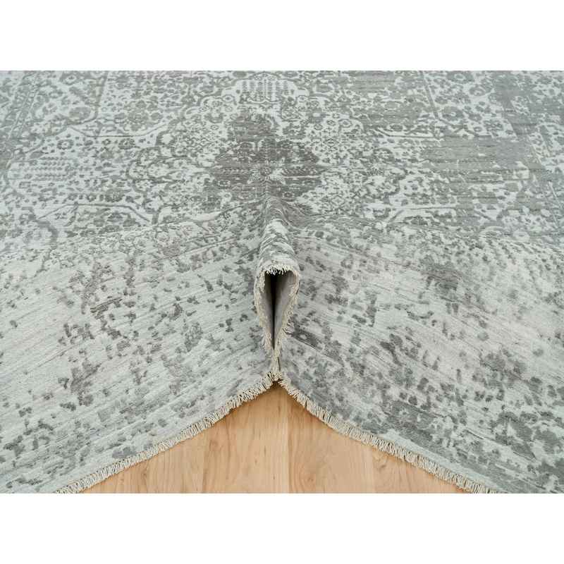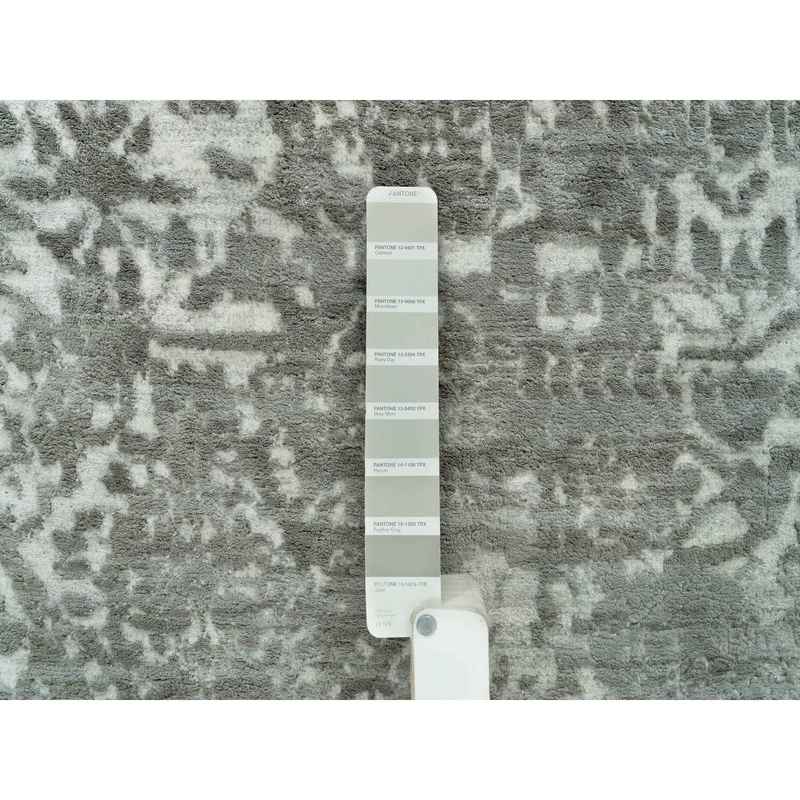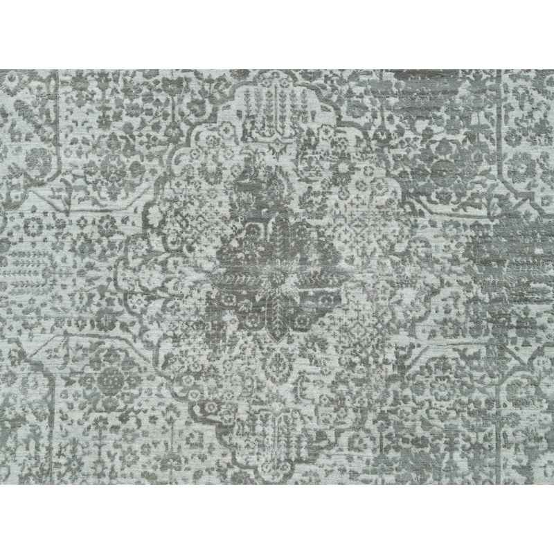 9’x12′ Gainsboro Grey, Wool and Silk, Hand Knotted, Broken and Erased Persian Design, Oriental Rug Sh65873