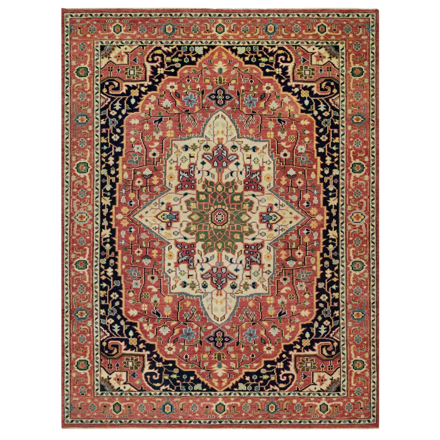 9’x12′ Indian Red, Hand Knotted, Heriz Serapi With Large Medallion Design, Supple Collection, Soft Pile, Pure Wool Oriental Rug Sh90301
