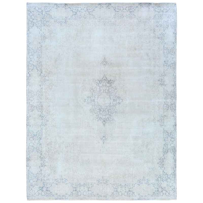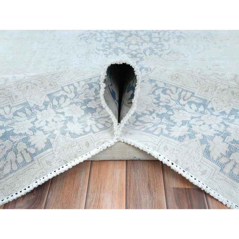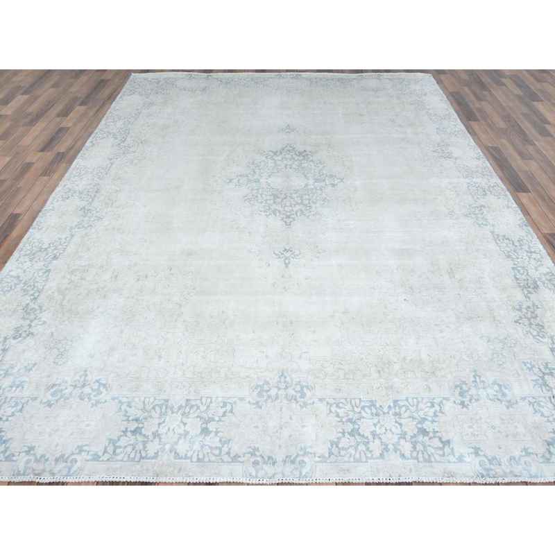 9’x12′ Ivory Semi Antique Persian Kerman Worn Wool, Sheared Low, Hand Knotted Distressed Look Oriental Rug Sh81254