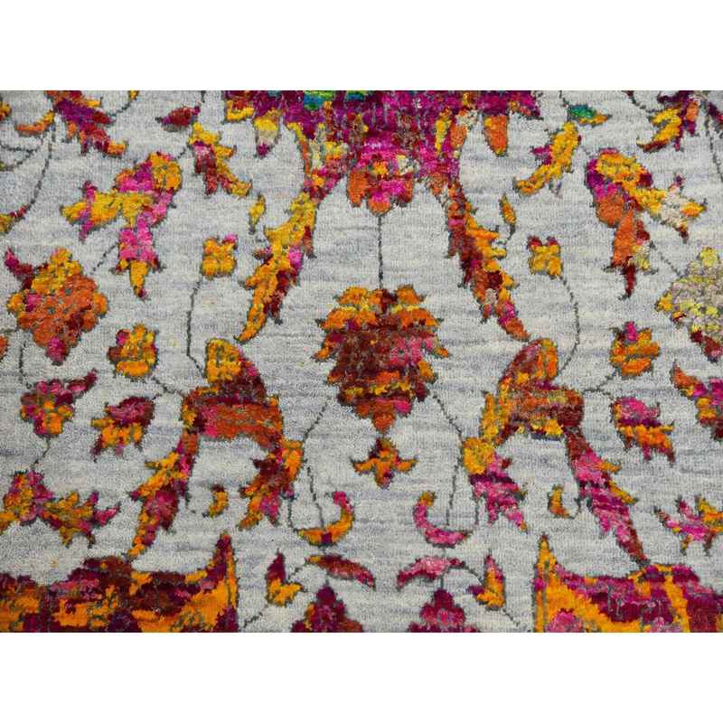 9’x12′ Light Gray, Erased Persian Design with Colorful Pattern, Sari Silk with Textured Wool Hand Knotted, Oriental Rug Sh75243
