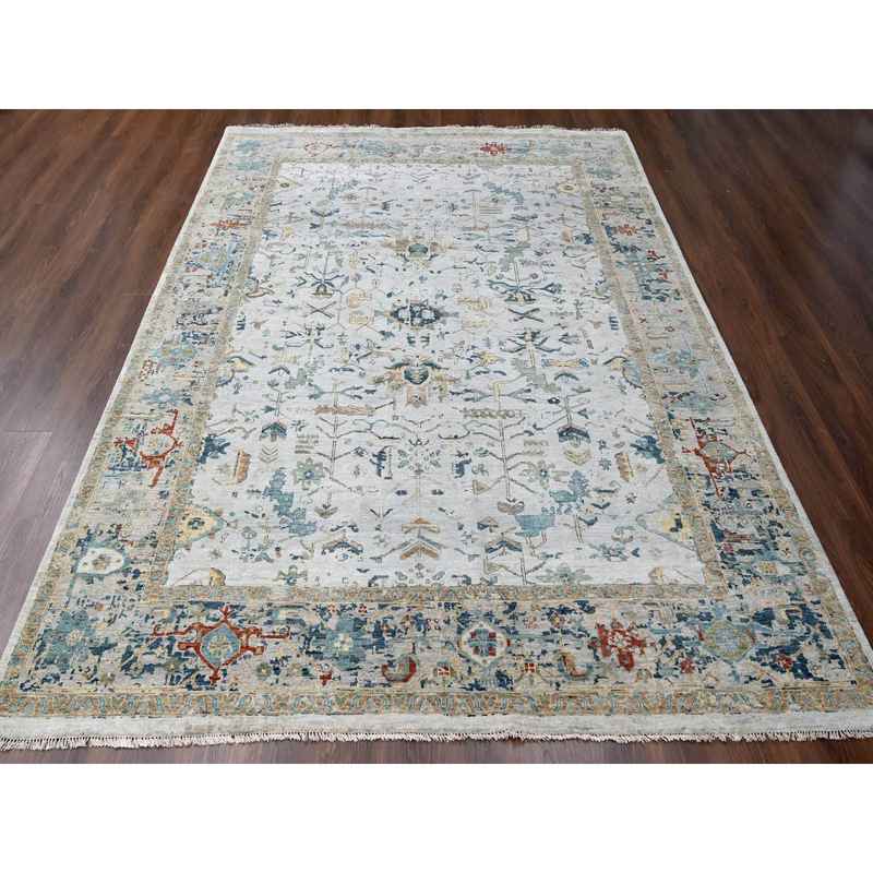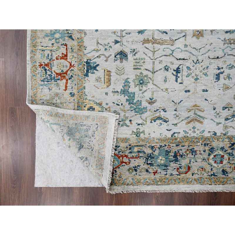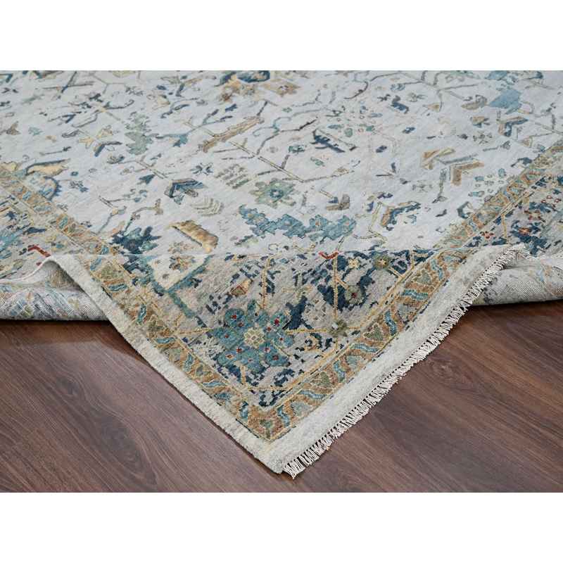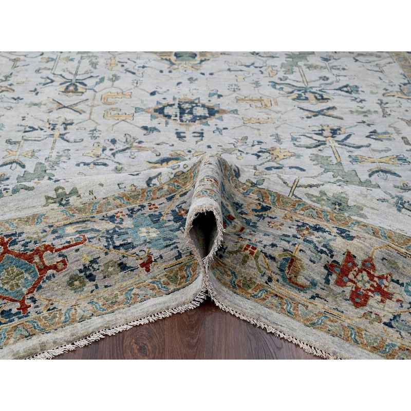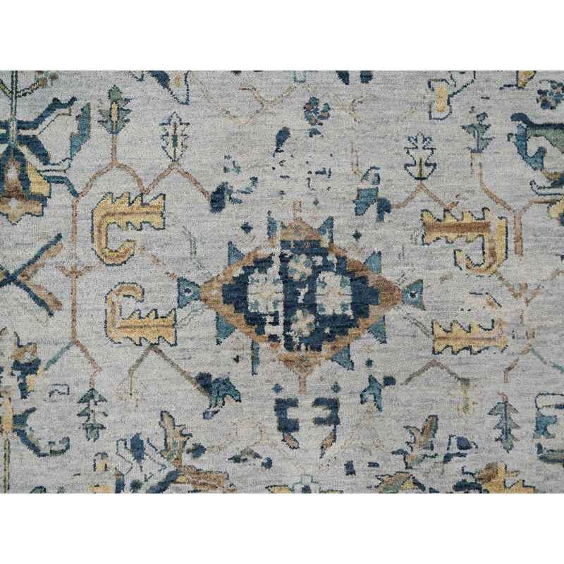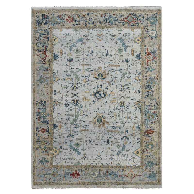 9’x12′ Light Gray, Natural Wool Soft Color Pallet, Hand Knotted Densely Woven, Broken Erased Persian Heriz Design Oriental Rug Sh84976