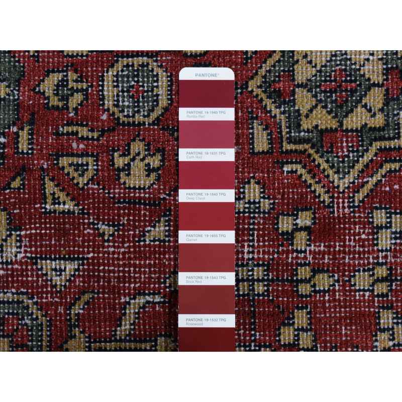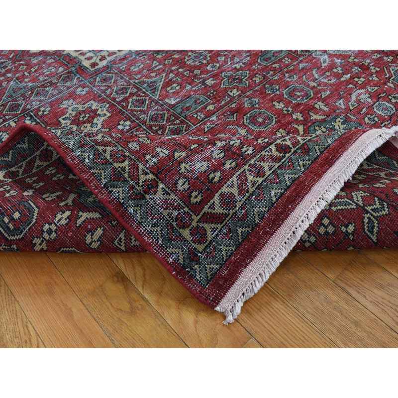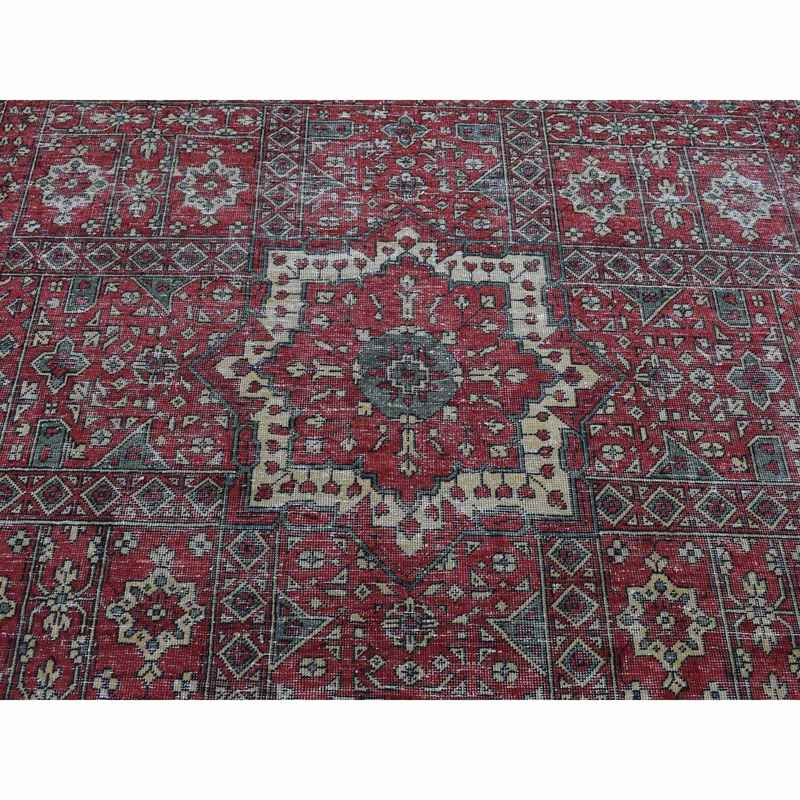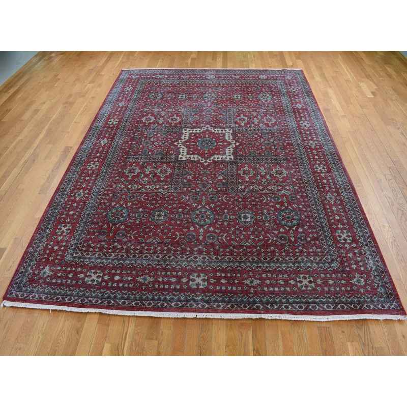 9’x12′ Maroon Red, Vintage Look Mamluk, Distressed, Zero Pile Shaved Low, Worn Wool Hand Knotted, Oriental Rug Sh87700