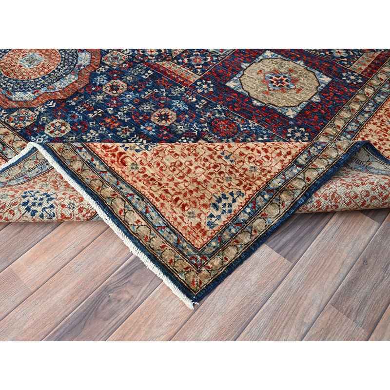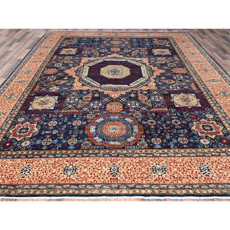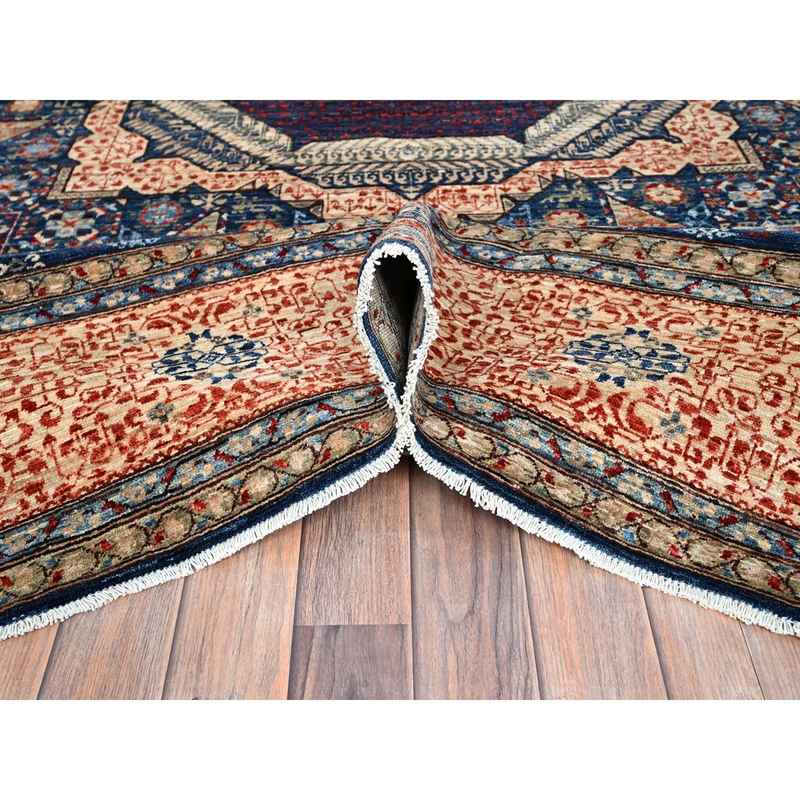 9’x12′ Prussian Blue and Kilim Beige Border, Hand Knotted Soft Wool, 200 KPSI 14th Century Mamluk Dynasty Pattern, Vegetable Dyes, Oriental Rug Sh86738