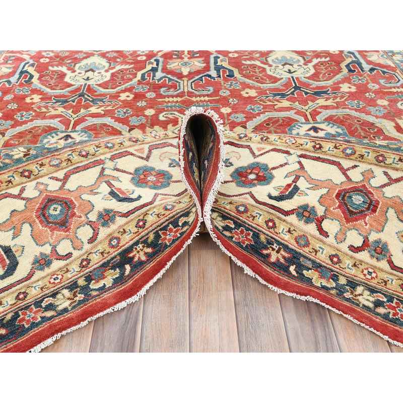 9’x12′ Soft Red, Dense Weave Pure Wool Hand Knotted, Afghan Peshawar with Bijar Garus Design Vegetable Dyes, Oriental Rug Sh82151
