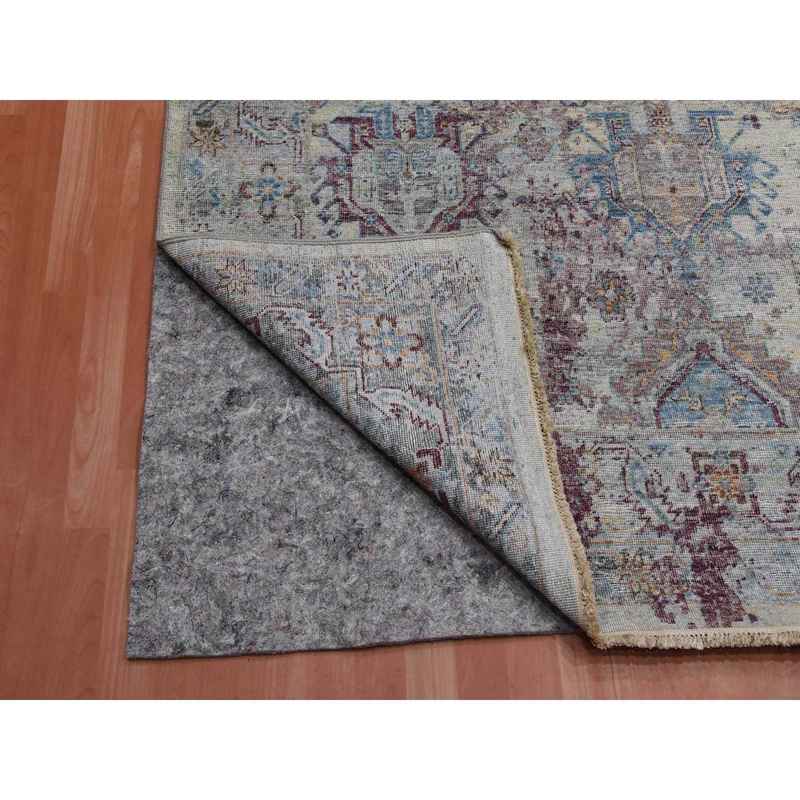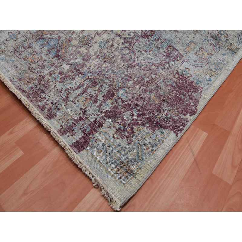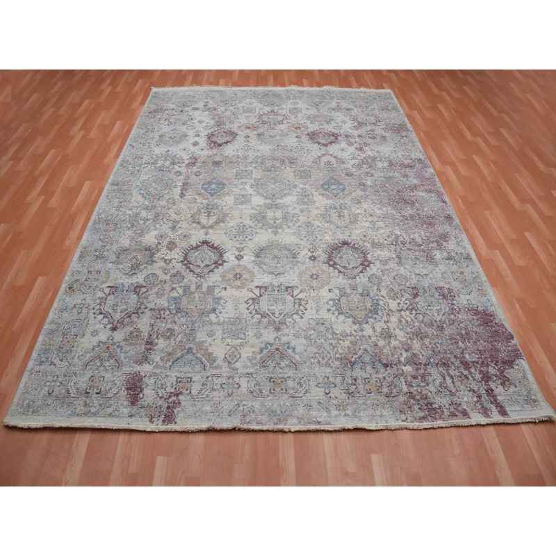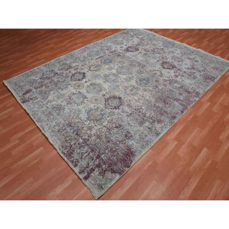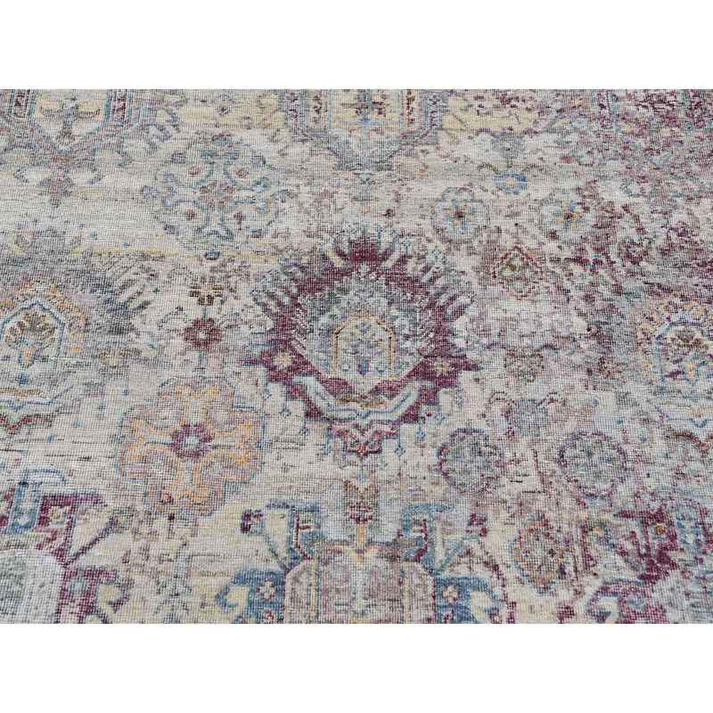 9’x12′ Stone Washed, Hand Knotted Caucasian Gul Motifs, Zero Pile with Distinct Abrash, Distressed and Sheared Down Pure Wool, Oriental Rug Sh75165