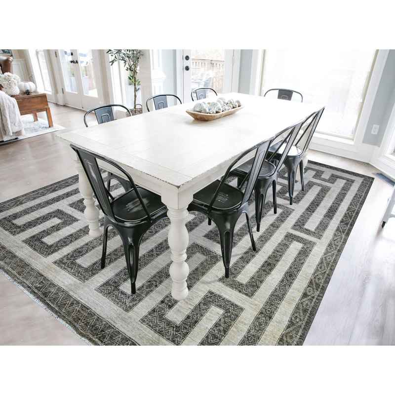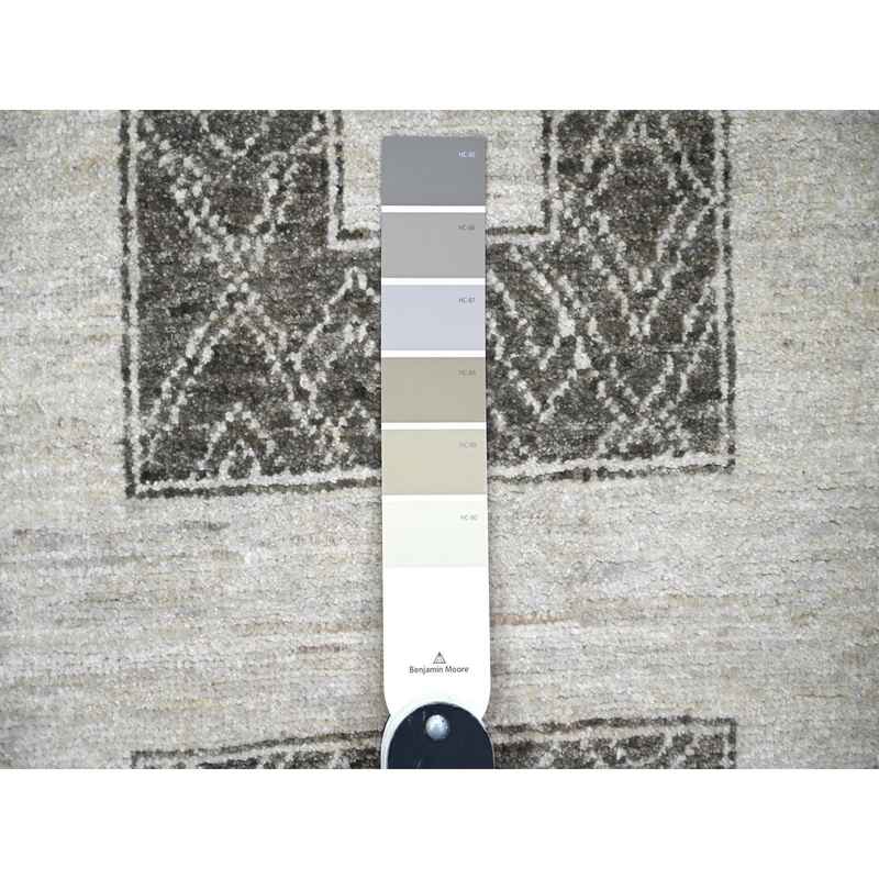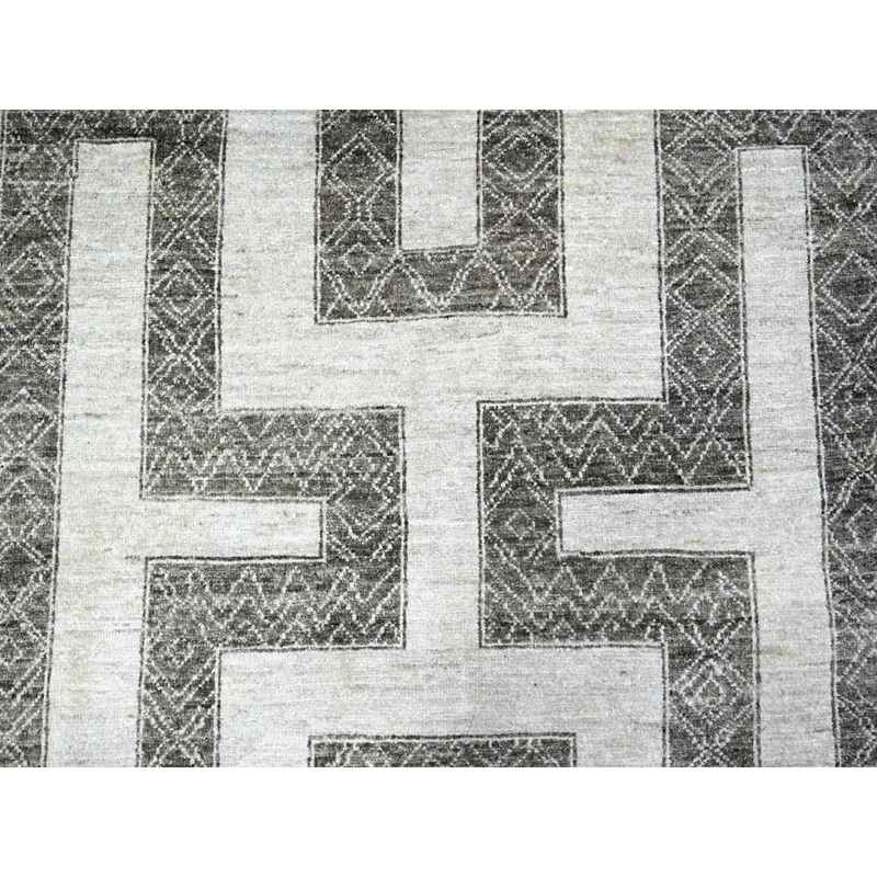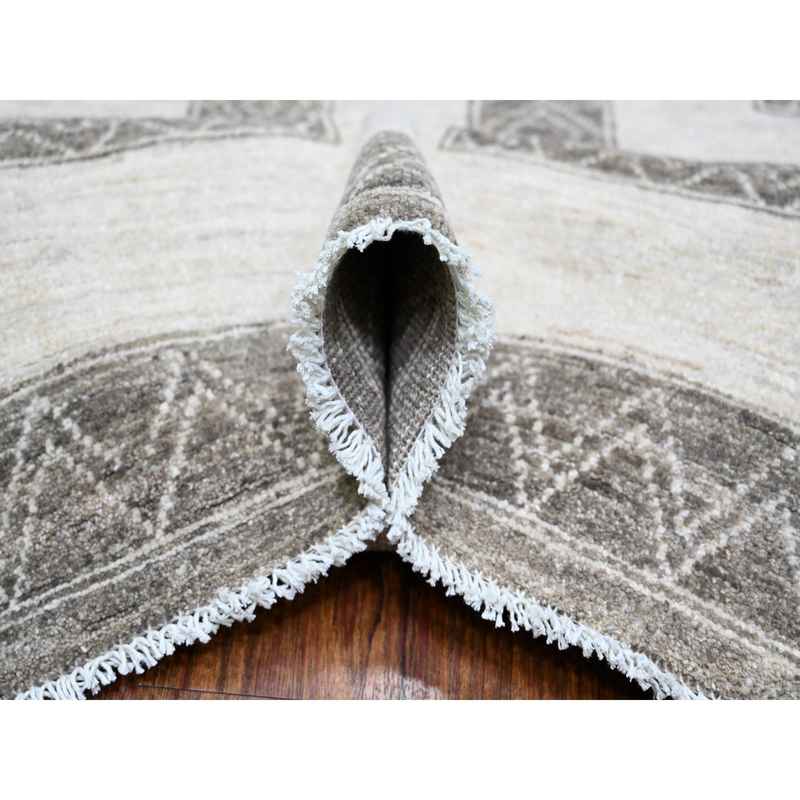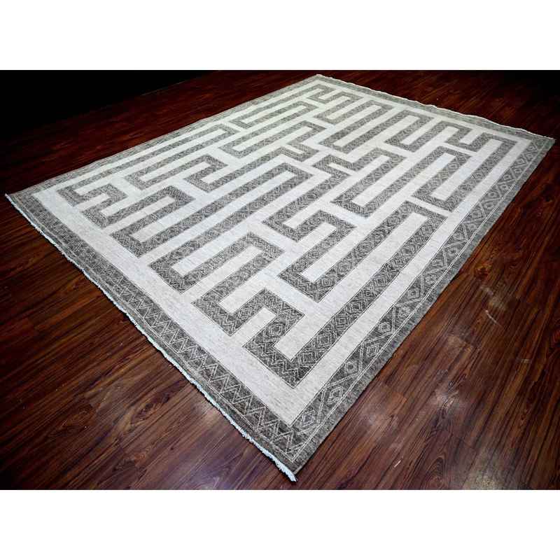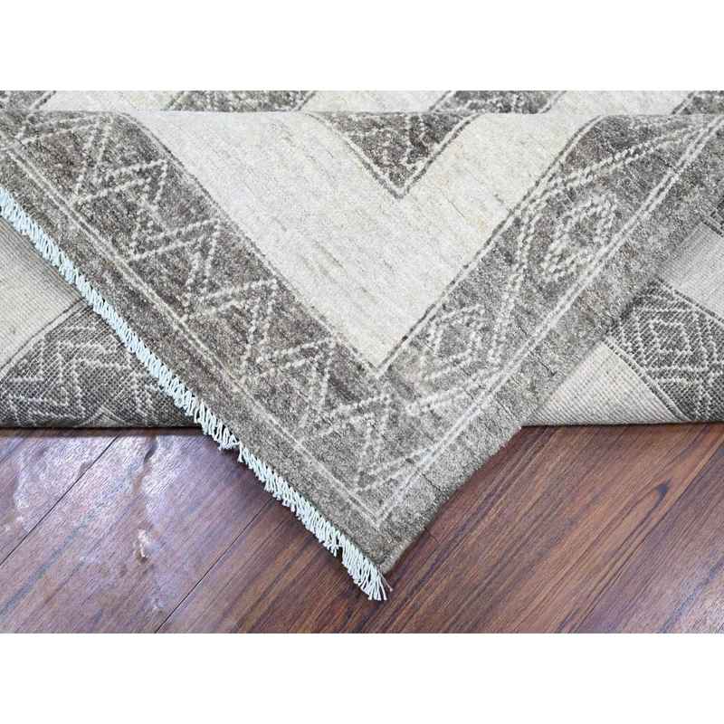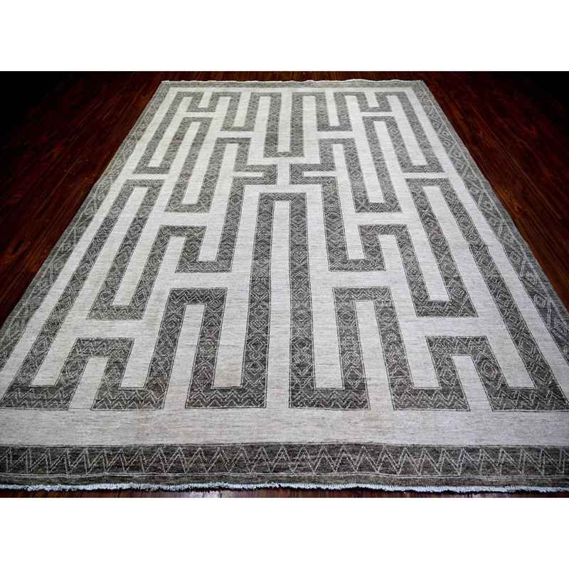 9’x12′ Taupe Brown, Natural Dyes Fine Peshawar with Intricate Geometric Motifs Maze Design, Hand Knotted 100% Wool, Oriental Rug Sh74213