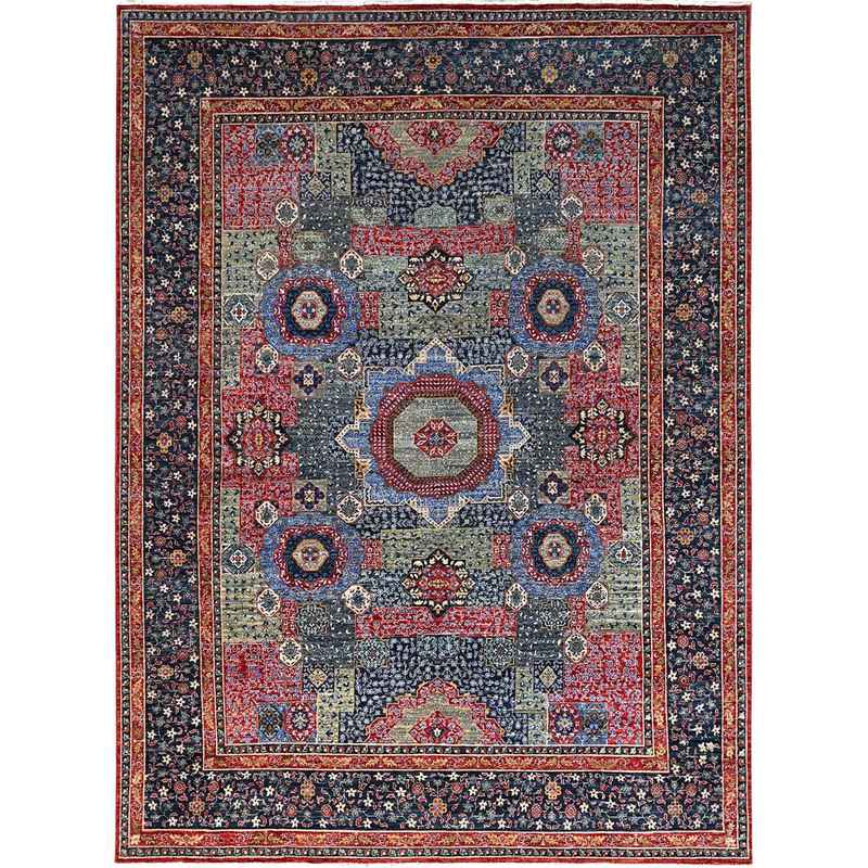 9’x12′ Yale Blue, Hand Knotted 100% Wool, Natural Dyes, 200 KPSI, 14th Century Mamluk Dynasty Pattern, Oriental Rug Sh86735