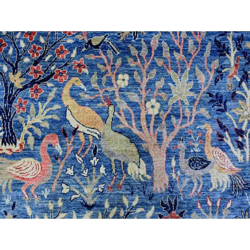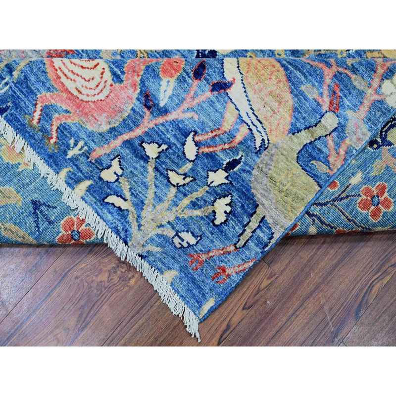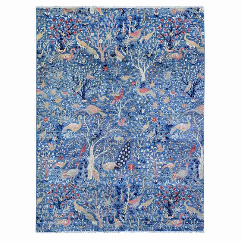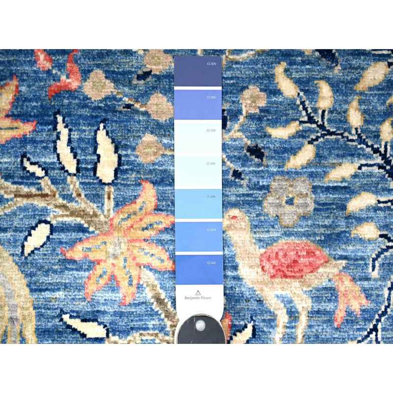 9’x12′ Yale Blue, Natural Dyes, 100% Wool, Afghan Peshawar with Birds of Paradise, Hand Knotted, Oriental Rug Sh88217