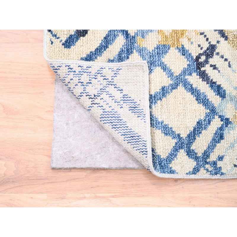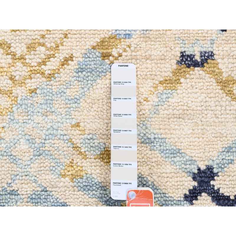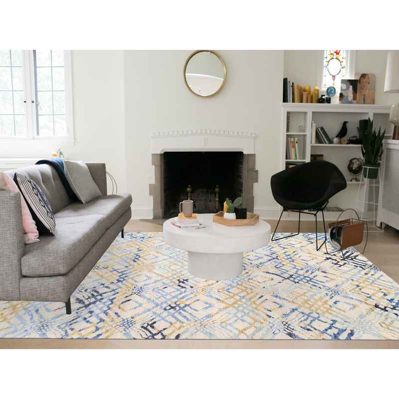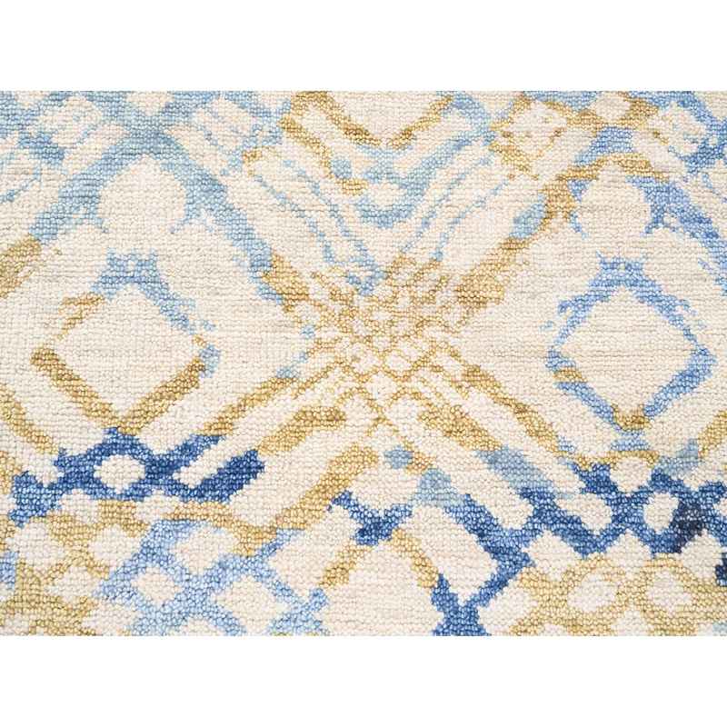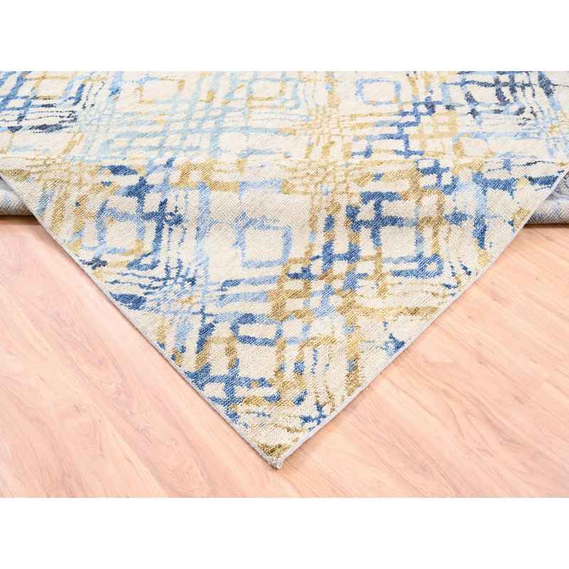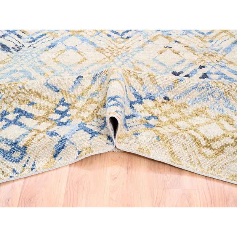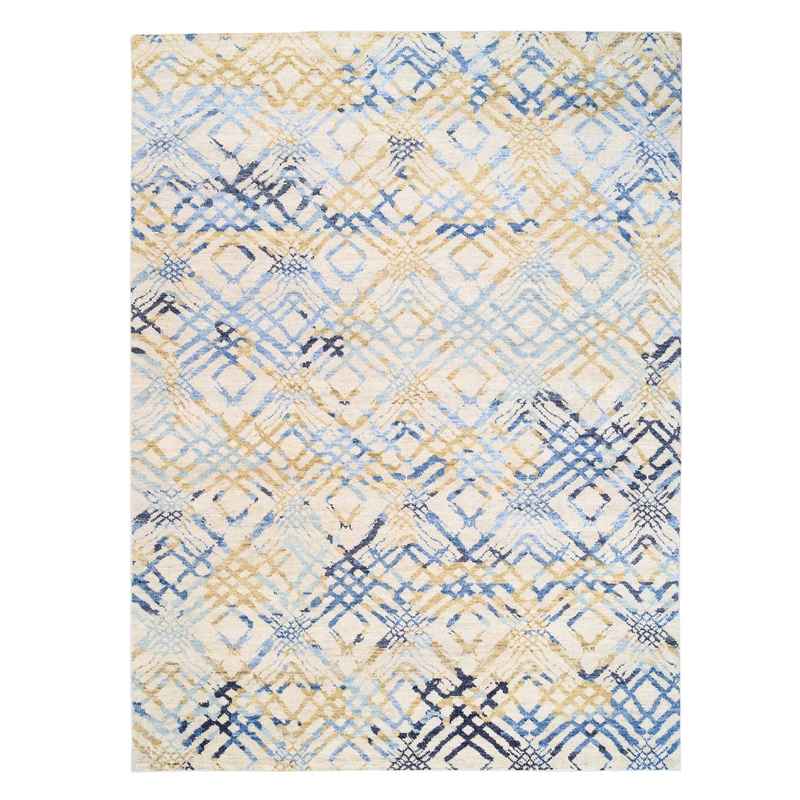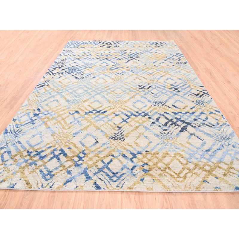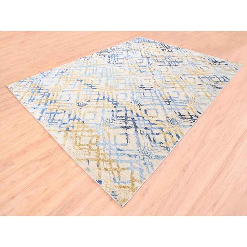 9’x12′ Yellow and Ivory Supple Collection Modern Oceanic Square Design Pure Wool Hand Knotted Oriental Rug Sh62219