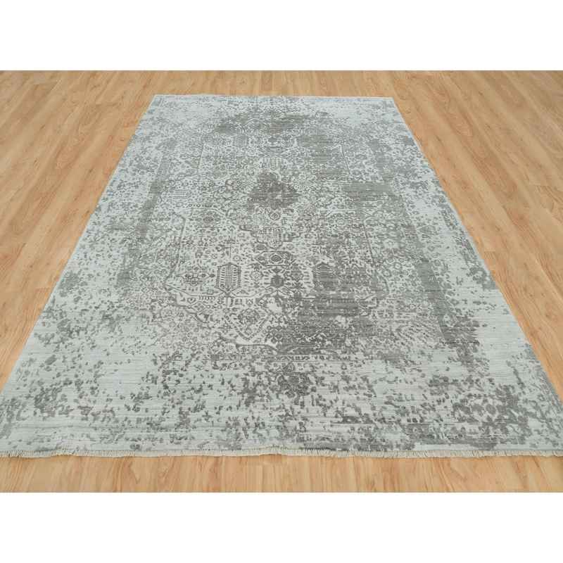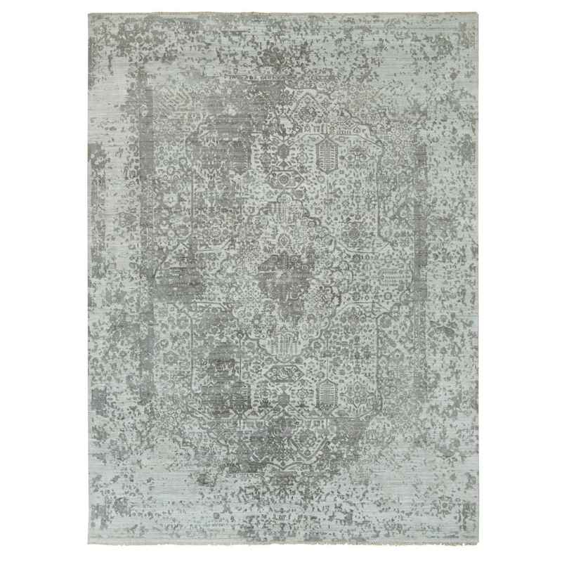 9’x12’1″ Goose Gray, Broken Persian Design, Hand Knotted, Wool and Silk, Oriental Rug Sh65877