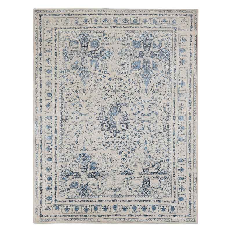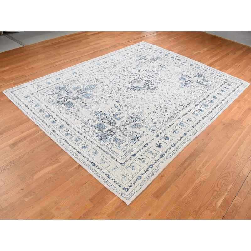 9’x12’1″ Ivory, Modern Broken Design Kashan, Wool and Silk, Hand Knotted, Oriental Rug Sh87062