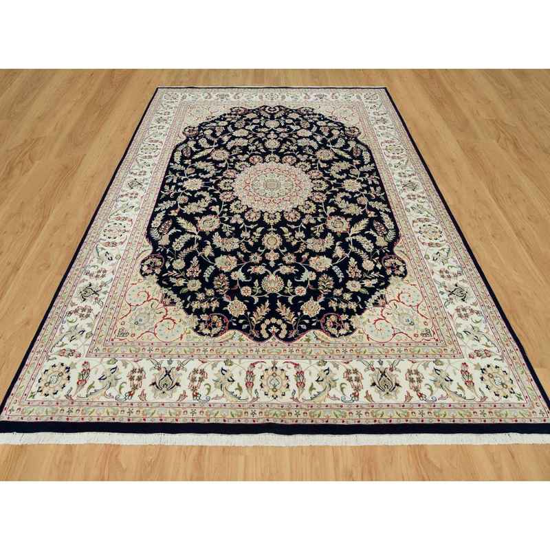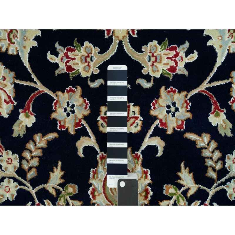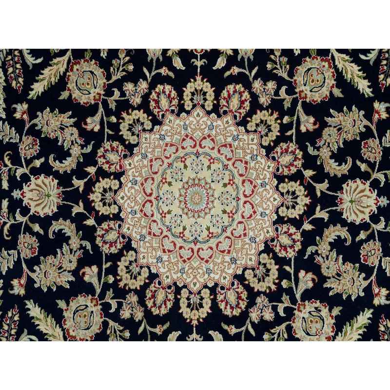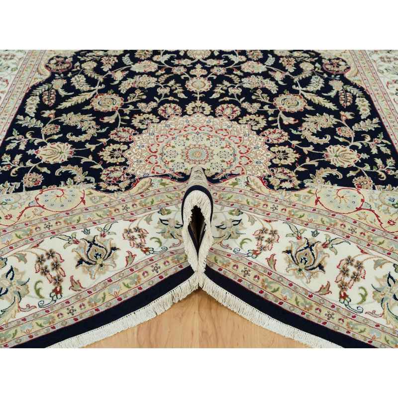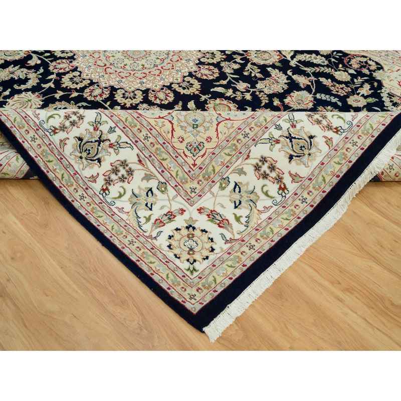 9’x12’1″ Salute Blue, Hand Knotted, Nain with Center Medallion Flower Design, 250 KPSI, Natural Wool, Oriental Rug Sh90407