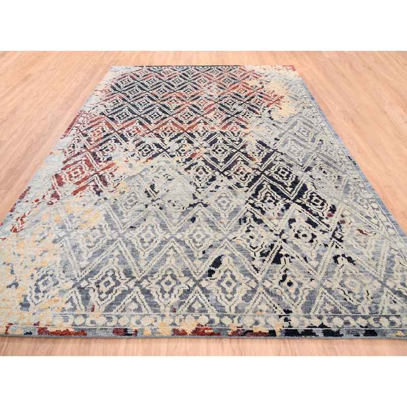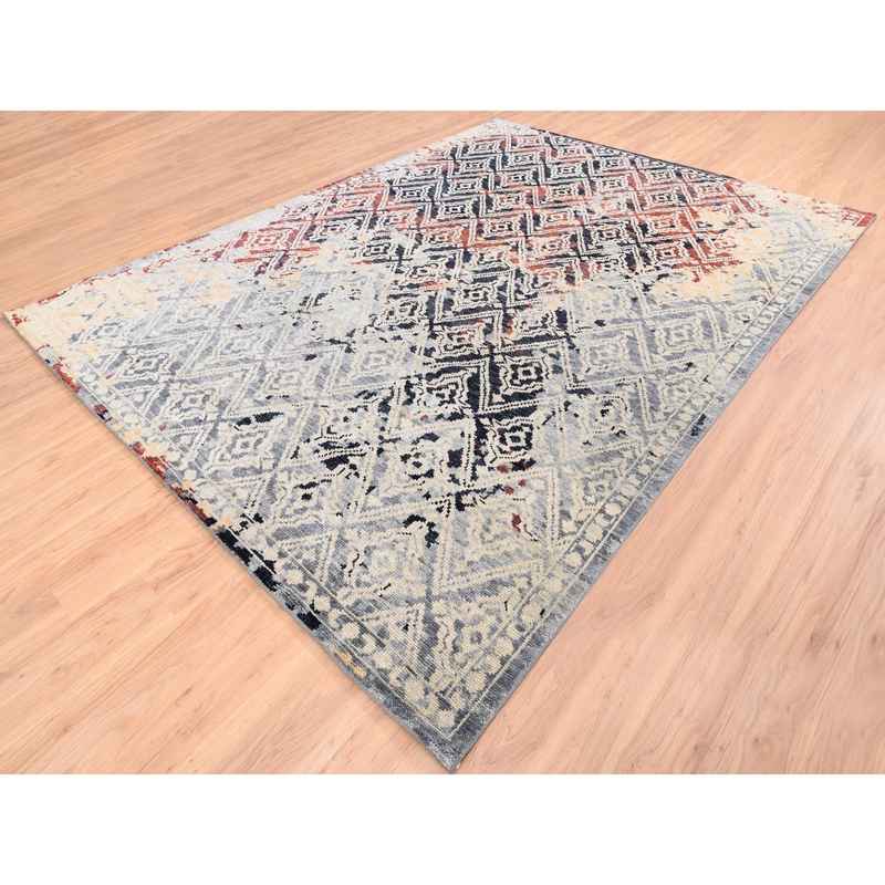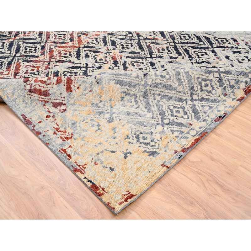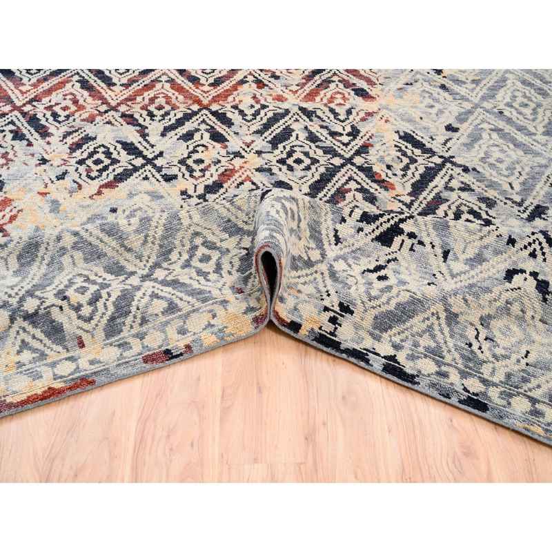 9’x12’1″ Silver Gray Supple Collection Erased Mughal Design Hand Knotted Oriental Rug Sh62202