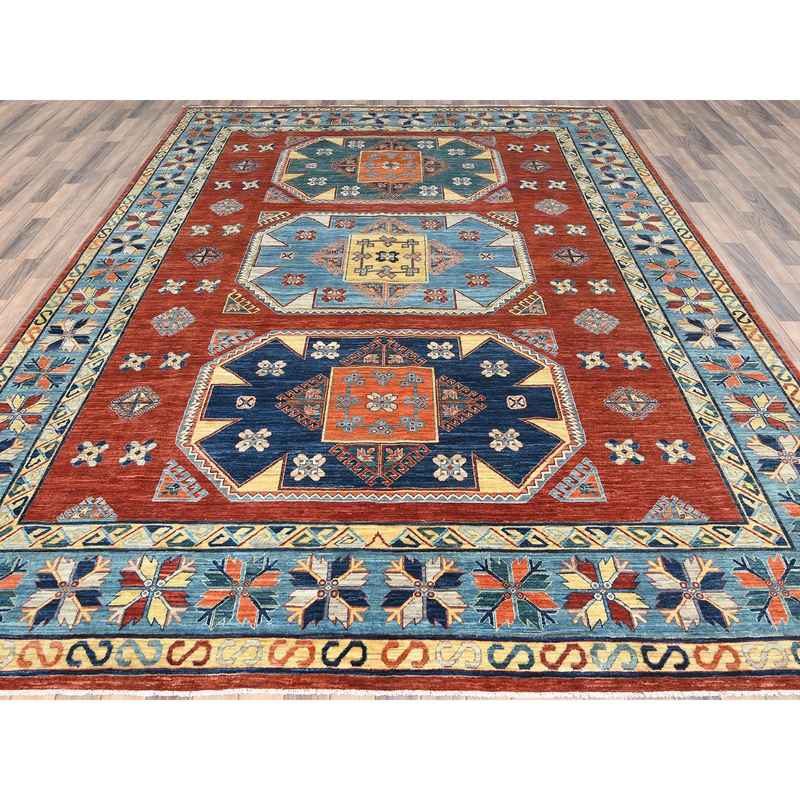 9’x12’2″ Imperial Red, Armenian Inspired Caucasian Design, 200 KPSI, Natural Dyes, Densely Woven, Natural Wool, Hand Knotted, Oriental Rug Sh85299