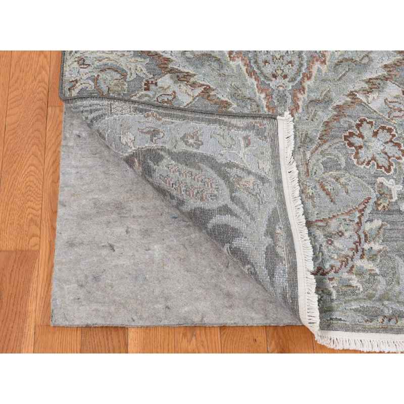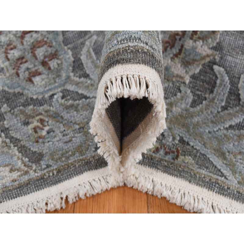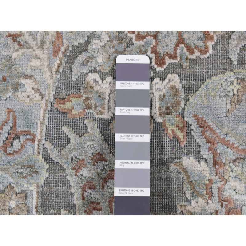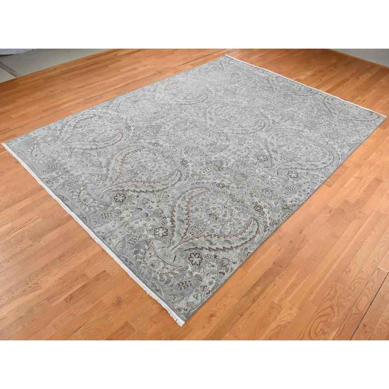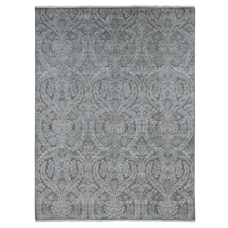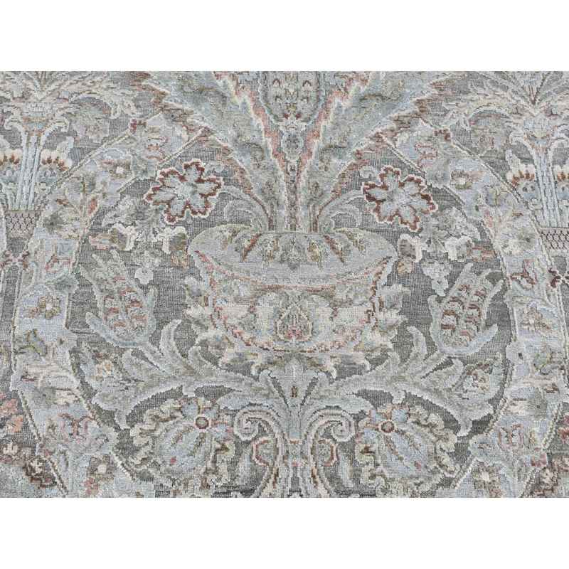 9’x12’2″ Ultimate Gray, Pure Silk with Textured Wool, Wreath and Urns Design, Hand Knotted, Oriental Rug Sh87073