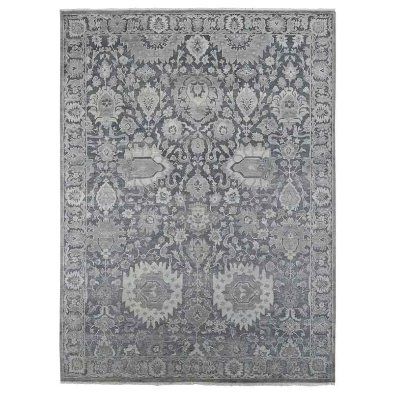 9’x12’4″ Arsenic Gray, Silk with Textured Wool, Hand Knotted, Oushak Influence, Oriental Rug Sh87070