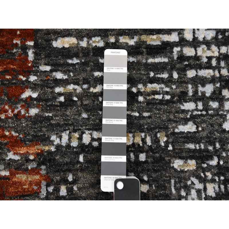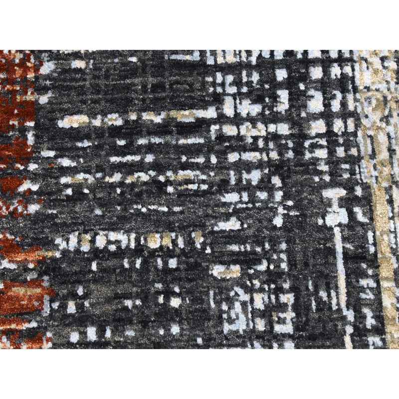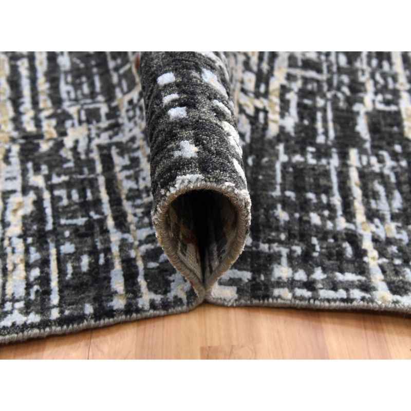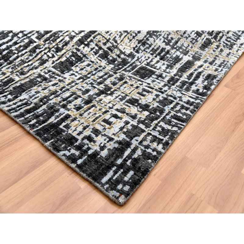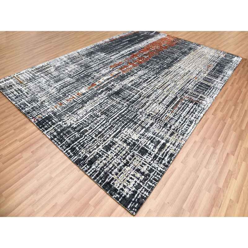 9’x12’4″ Jet Black, Densely Woven Persian Knot, Organic Wool Hand Knotted, Abstract Design, Oriental Rug Sh83043