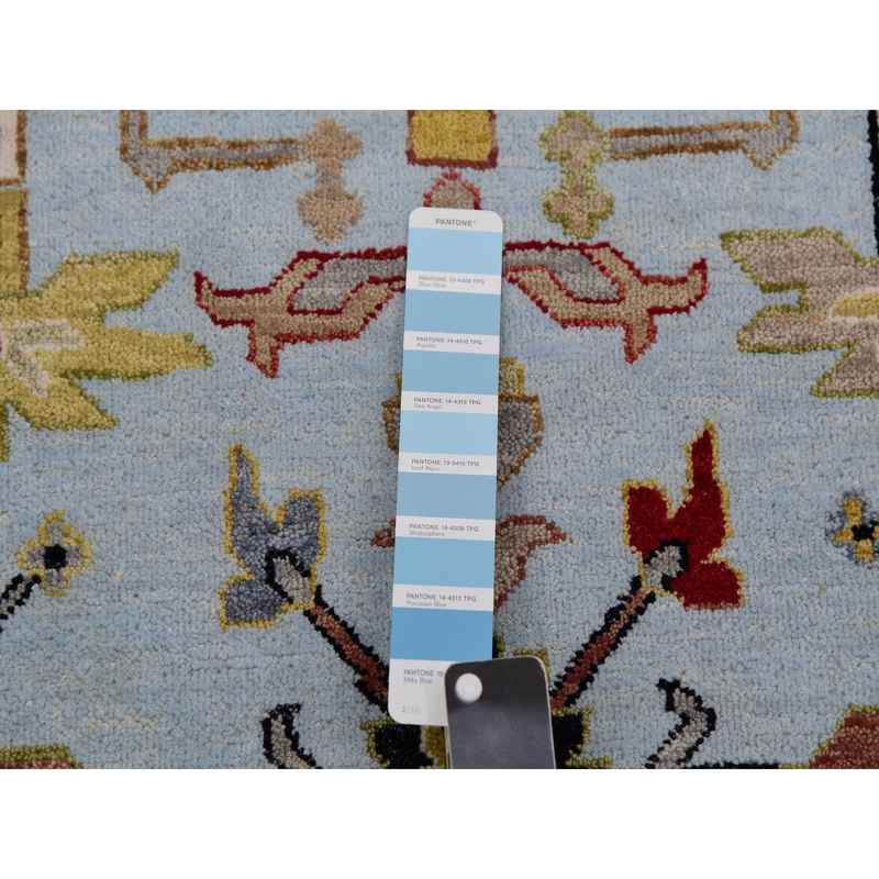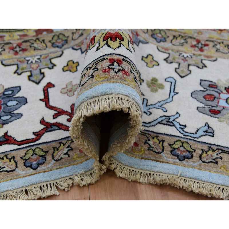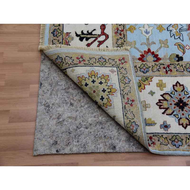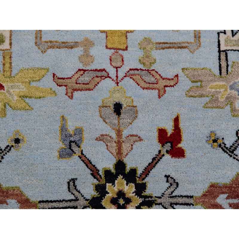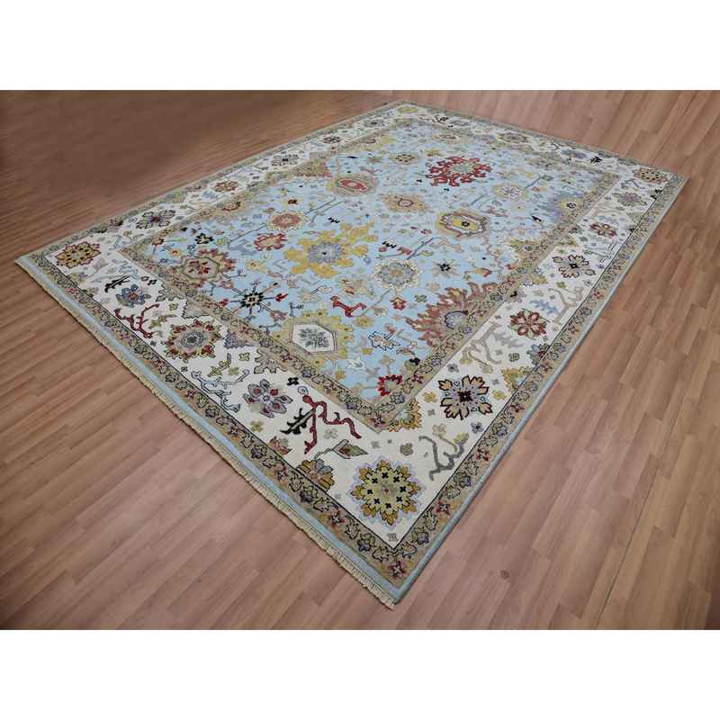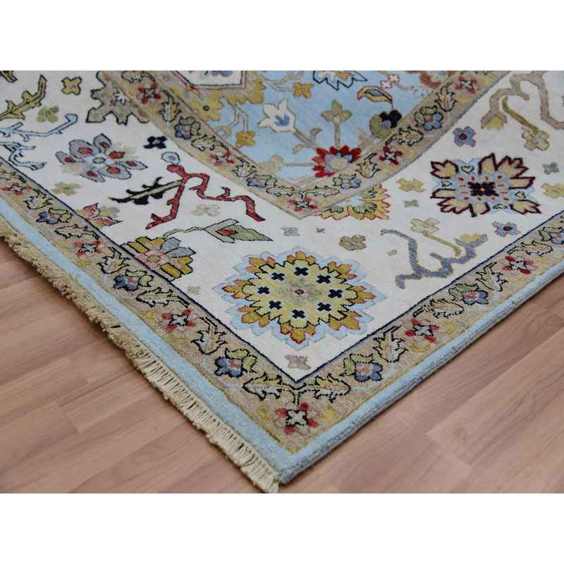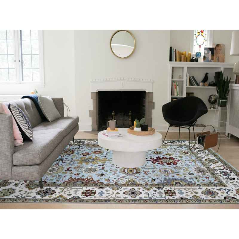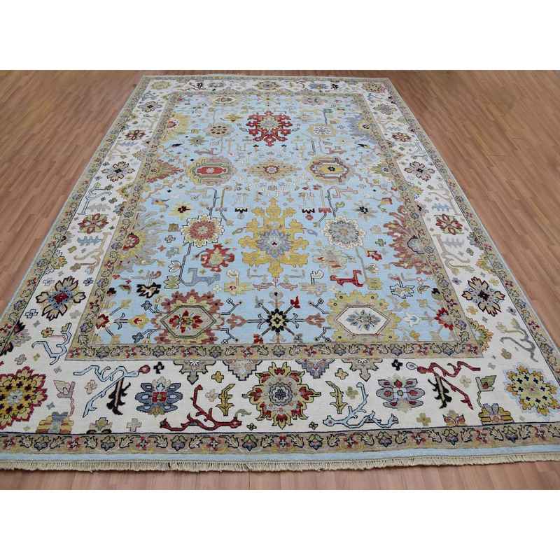 9’x12’5″ Azure Sky Blue With Snowbound White, Hand Knotted Pure Vibrant Wool, Agra With Large Leaf Geometric Design, Oriental Rug Sh83107